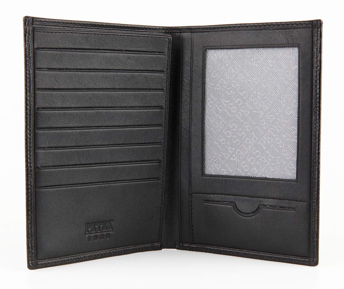 Элегантное мужское портмоне Petek из высококачественной натуральной кожи . Одно отделение для купюр, отделение для паспорта, восемь карманов для кредиток, два кармана.