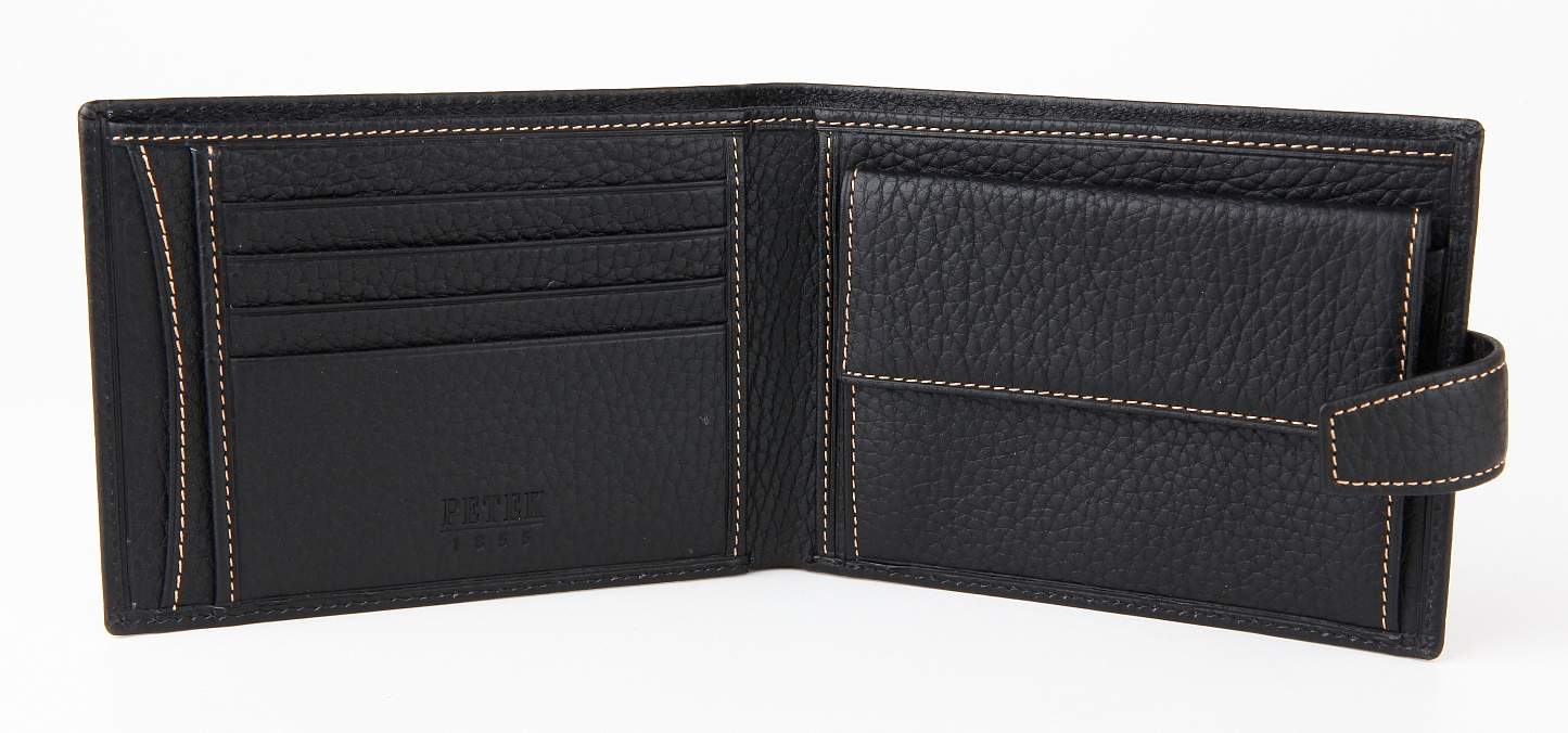 Элегантное мужское портмоне Petek из натуральной кожи . Внутри: 2 отделения для купюр, 4 кармана для кредиток, отделение для мелочи.