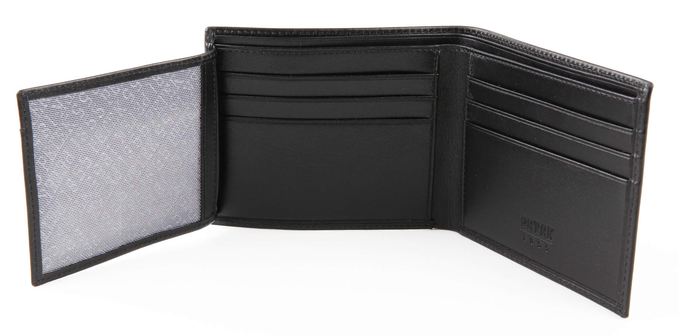 Тонкое и функциональное портмоне из натуральной кожи. Классическая модель. Внутри: два отделения для купюр, шесть отделений для визитных или пластиковых карт и два прозрачных кармана.
