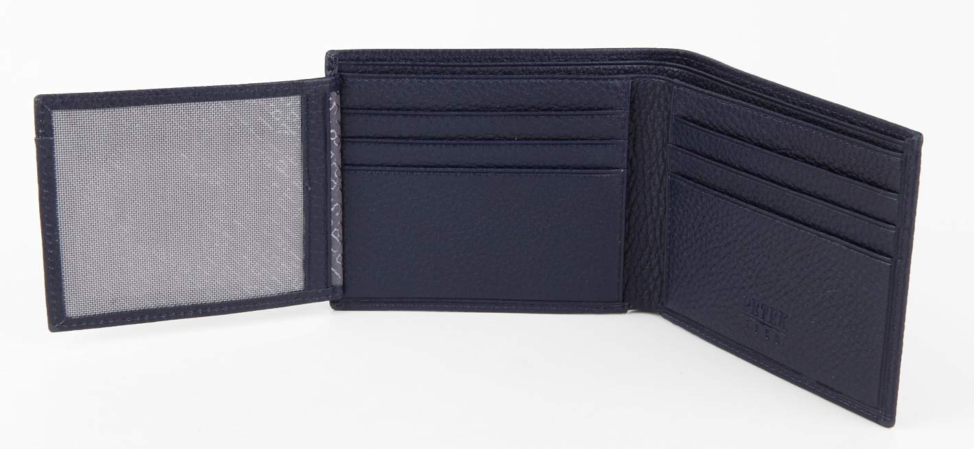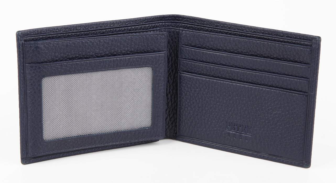 Тонкое и функциональное портмоне из натуральной кожи. Классическая модель. Внутри: два отделения для купюр, шесть отделений для визитных или пластиковых карт и два прозрачных кармана.