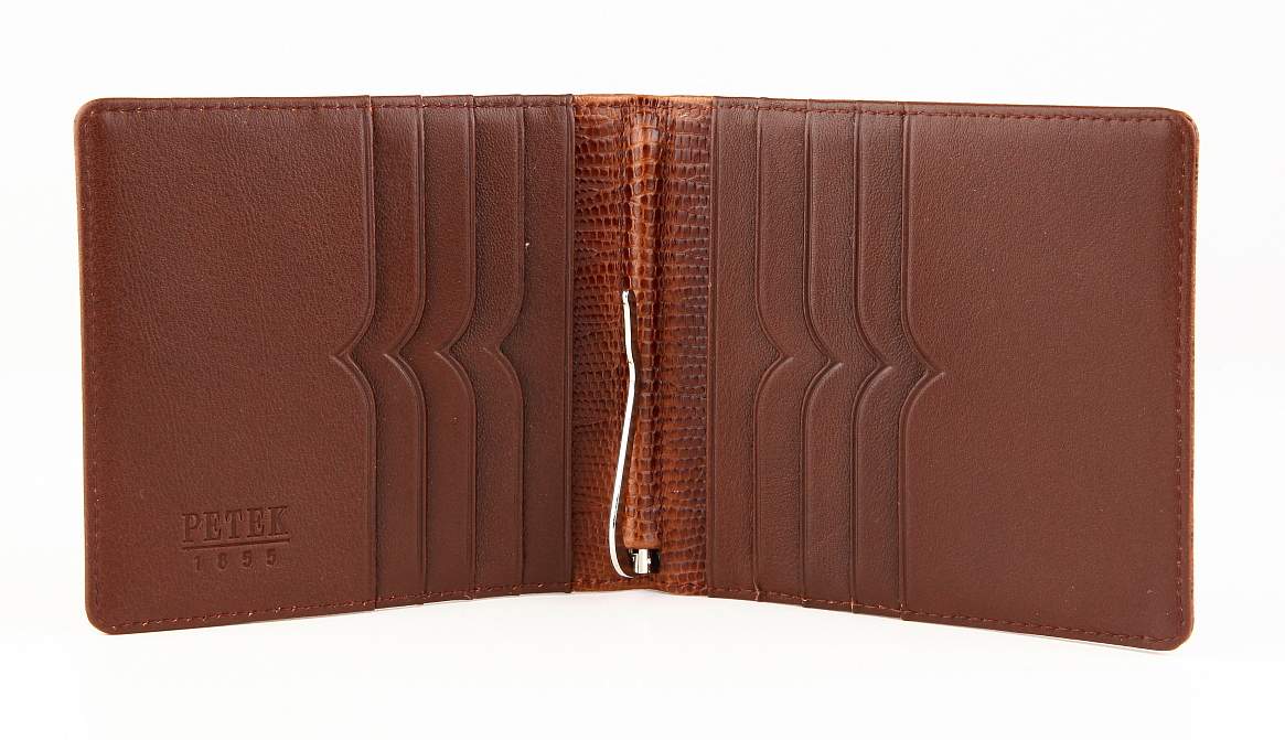 Элегантный, компактный зажим для денег из натуральной кожи. Внутри 8 отделений для кредитных карт.