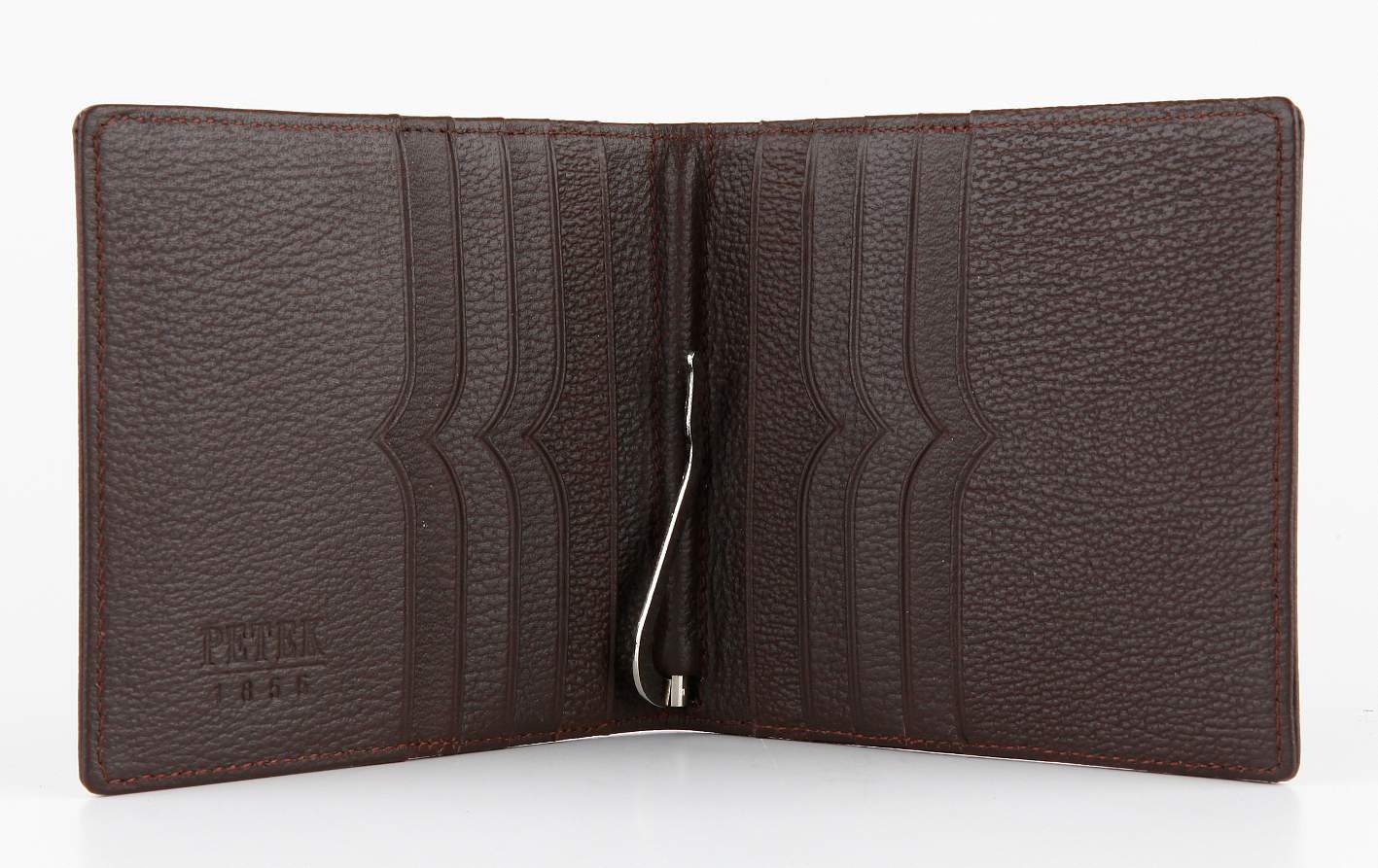 Элегантный, компактный зажим для денег из натуральной кожи. Внутри 8 отделений для кредитных карт.