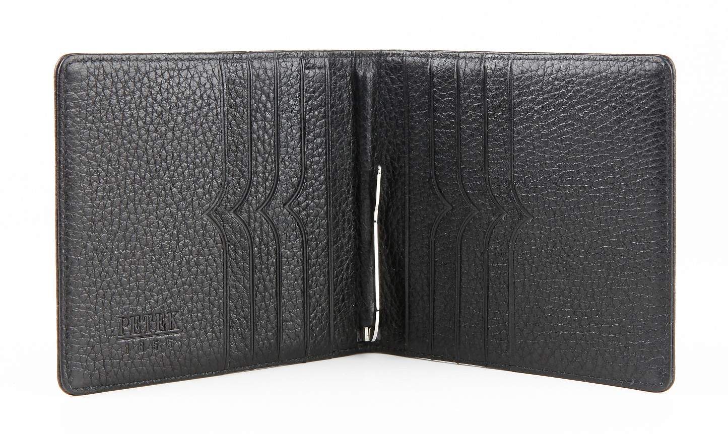 Элегантный, компактный зажим для денег из натуральной кожи. Внутри 8 отделений для кредитных карт.