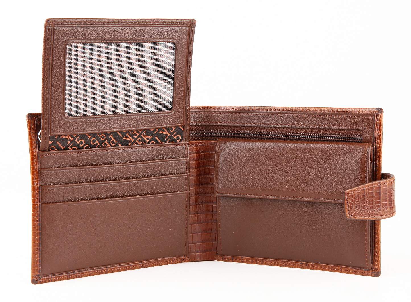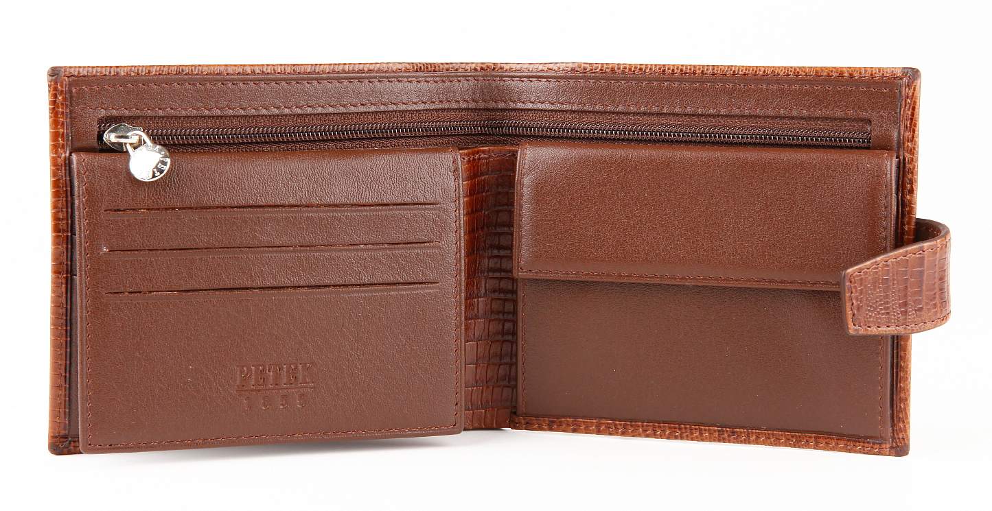 Классическое мужское портмоне Petek. Внутри: два отдела для купюр + один отдел для купюр на молнии, монетница, боковой карман, шесть отделений для визитных или пластиковых карт.