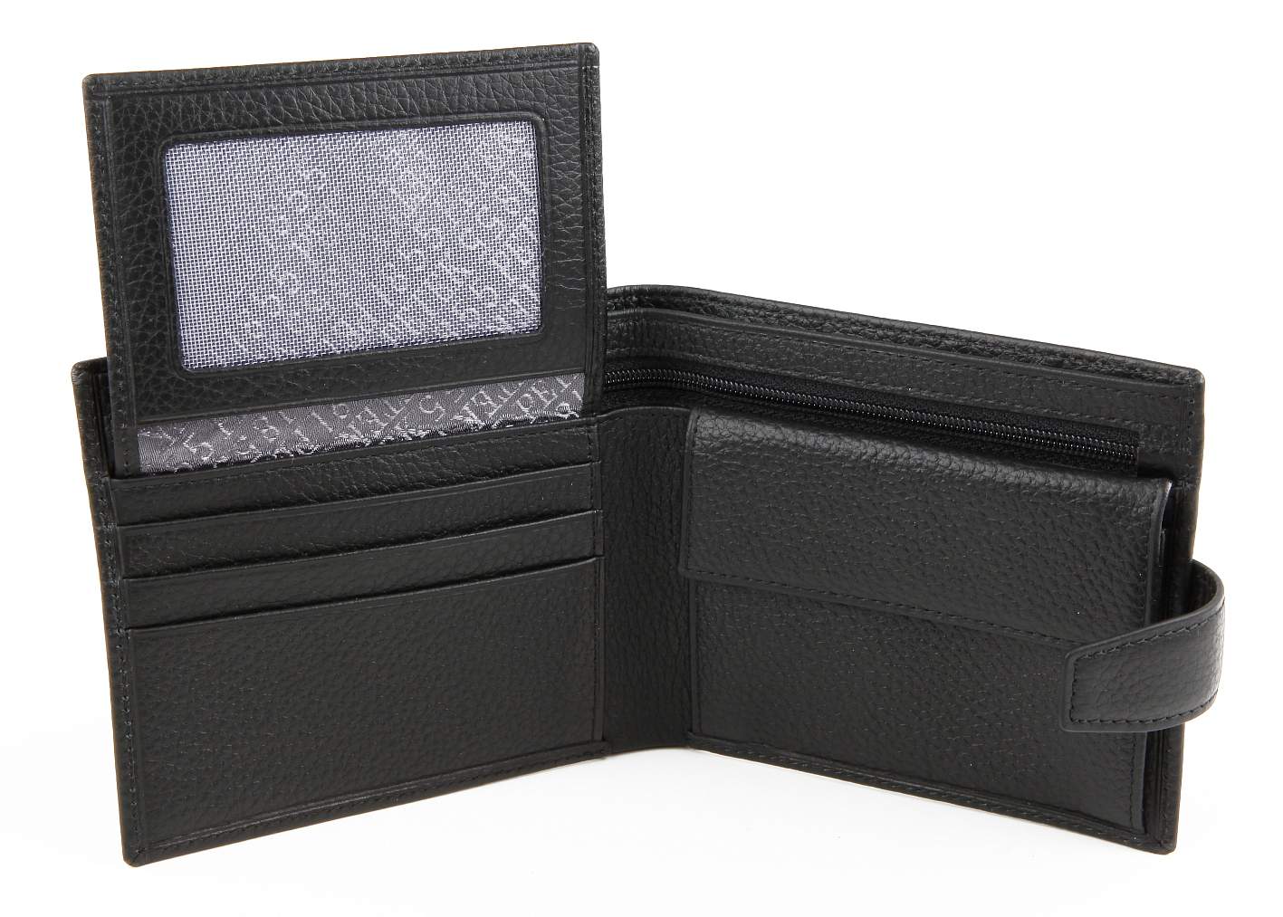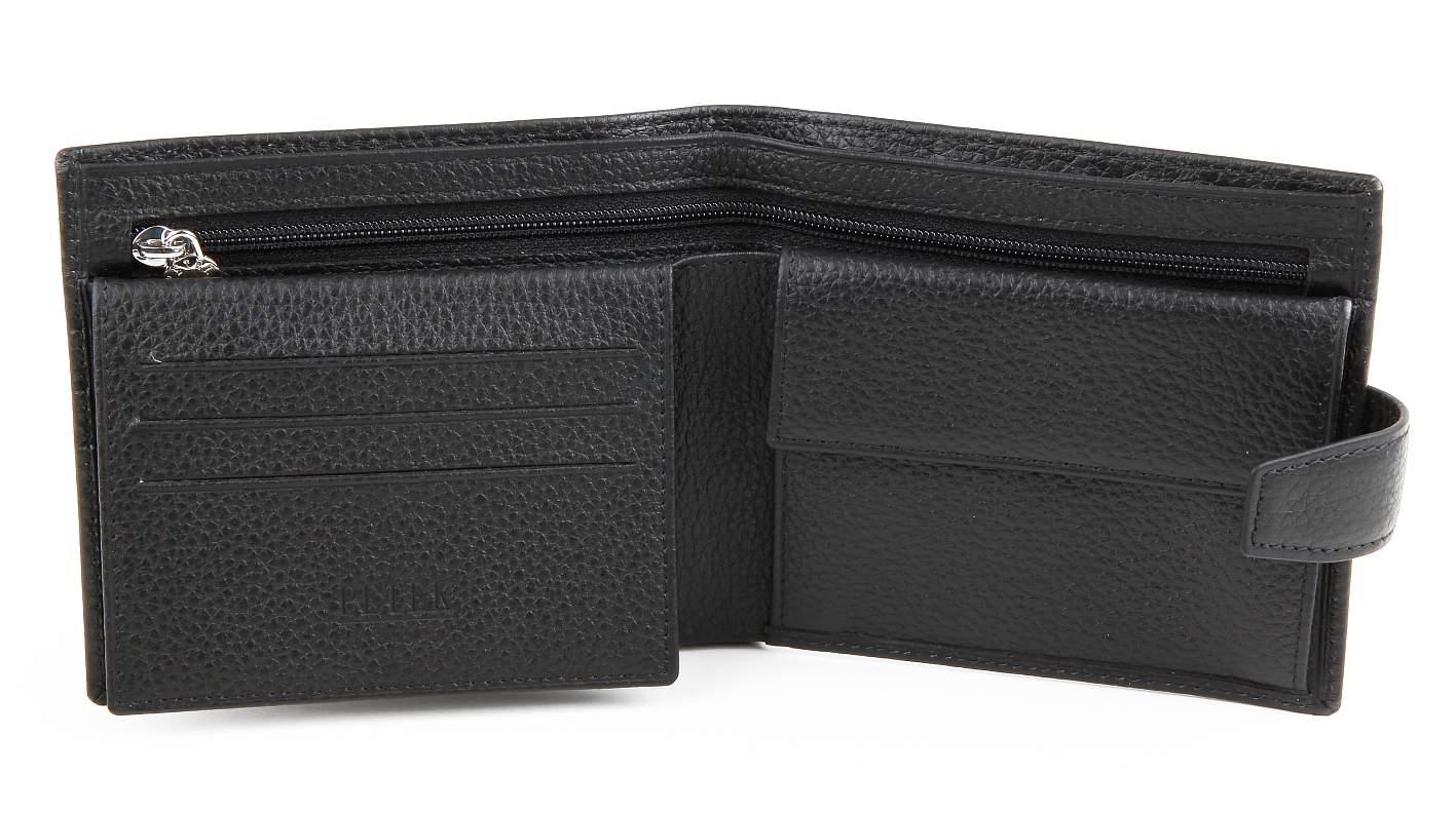 Классическое мужское портмоне Petek. Внутри: два отдела для купюр + один отдел для купюр на молнии, монетница, боковой карман, шесть отделений для визитных или пластиковых карт.