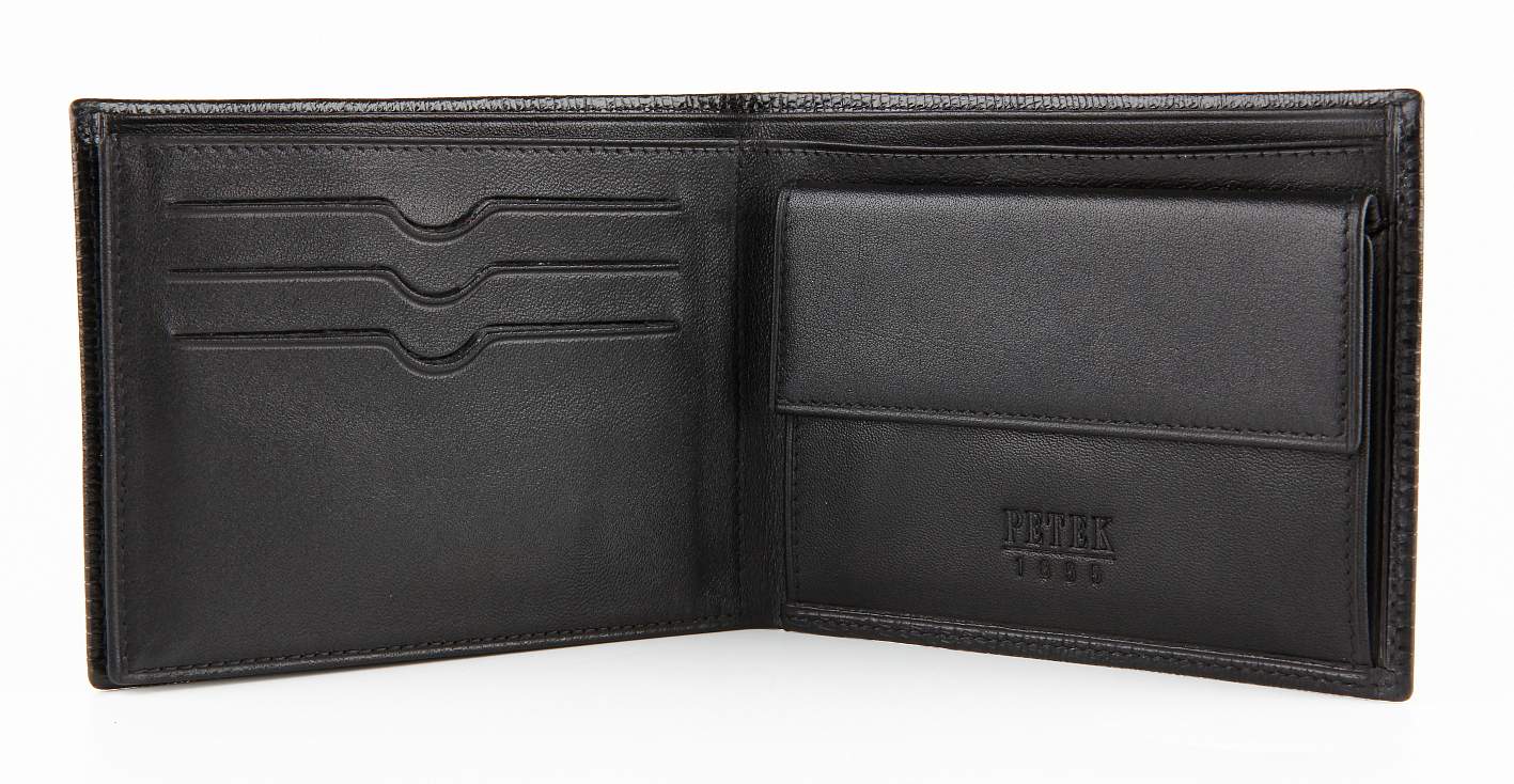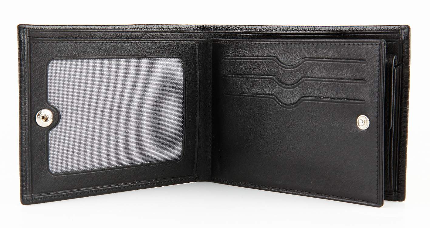 Портмоне из высококачественной натуральной кожи - стильный и функциональный аксессуар. Раскладывается пополам, что облегчает доступ к содержимому. Внутри - 2 отсека для купюр, отделение для монет, 2 потайных кармашка для документов и карман для пропуска/фотографии с прозрачной пластиковой вставкой. Также предусмотрено 6 кармашков для пластиковых карт - удобно для быстрого доступа к необходимым картам.