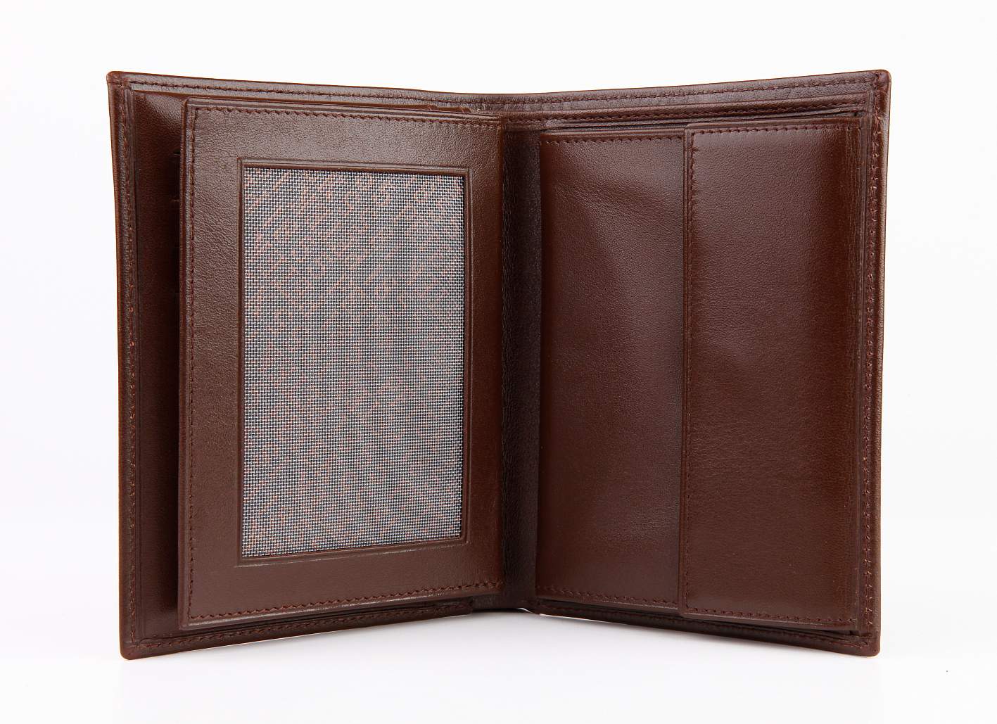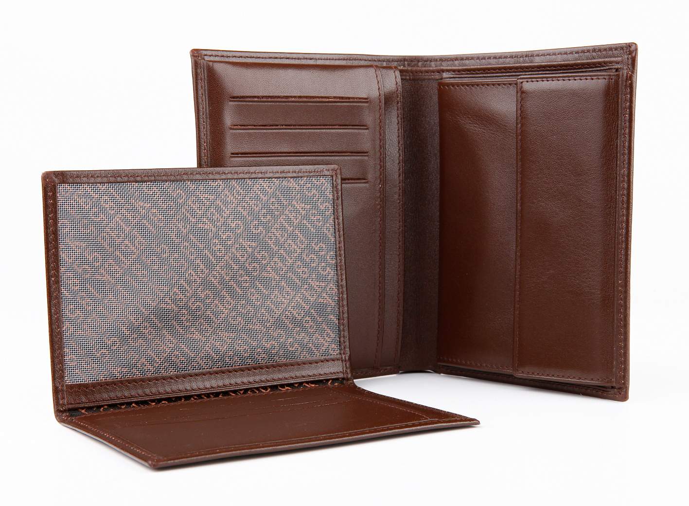 Современное портмоне из натуральной кожи. Внутри: 2 отделения для купюр, 7 карманов для кредитных карт, отделение для мелочи. Внутри съемная вкладыш-книжка (8,5х11,5 см) с 2 отделениями-сеточками.