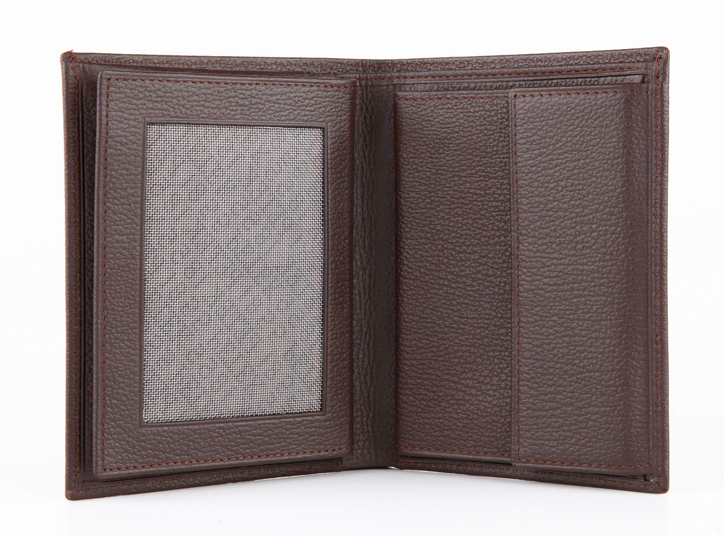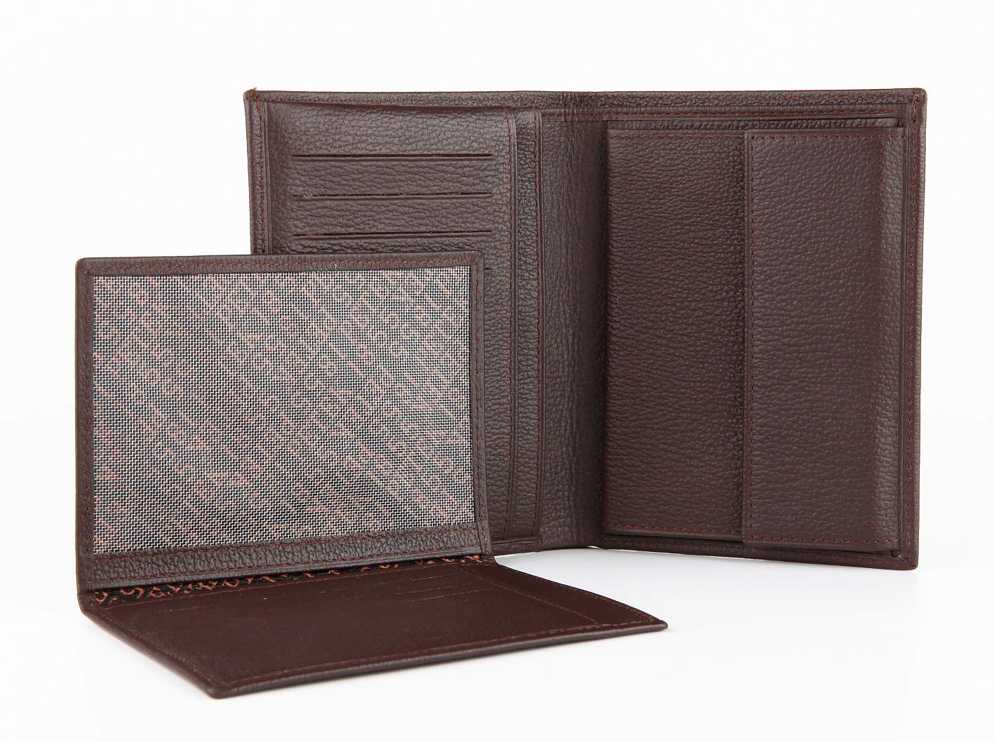 Современное портмоне из натуральной кожи. Внутри: 2 отделения для купюр, 7 карманов для кредитных карт, отделение для мелочи. Внутри съемная вкладыш-книжка (8,5х11,5 см) с 2 отделениями-сеточками.