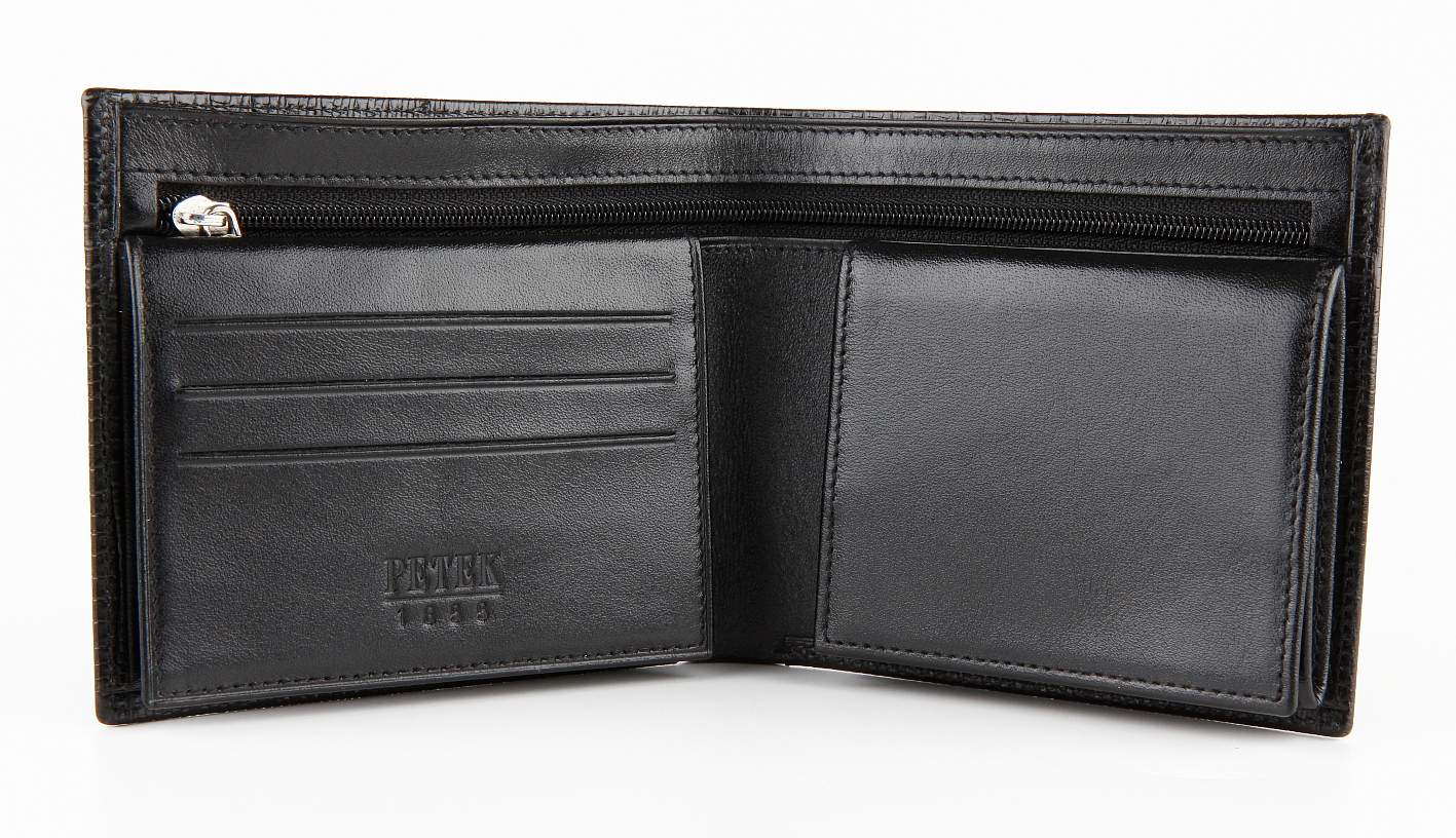Мужское портмоне Petek из высококачественной натуральной кожи. Эта удобная и многофункциональная модель . Внутри: 2 отделения для купюр, отделения для кредитных и визитных карт,съемное отделение для монет.
