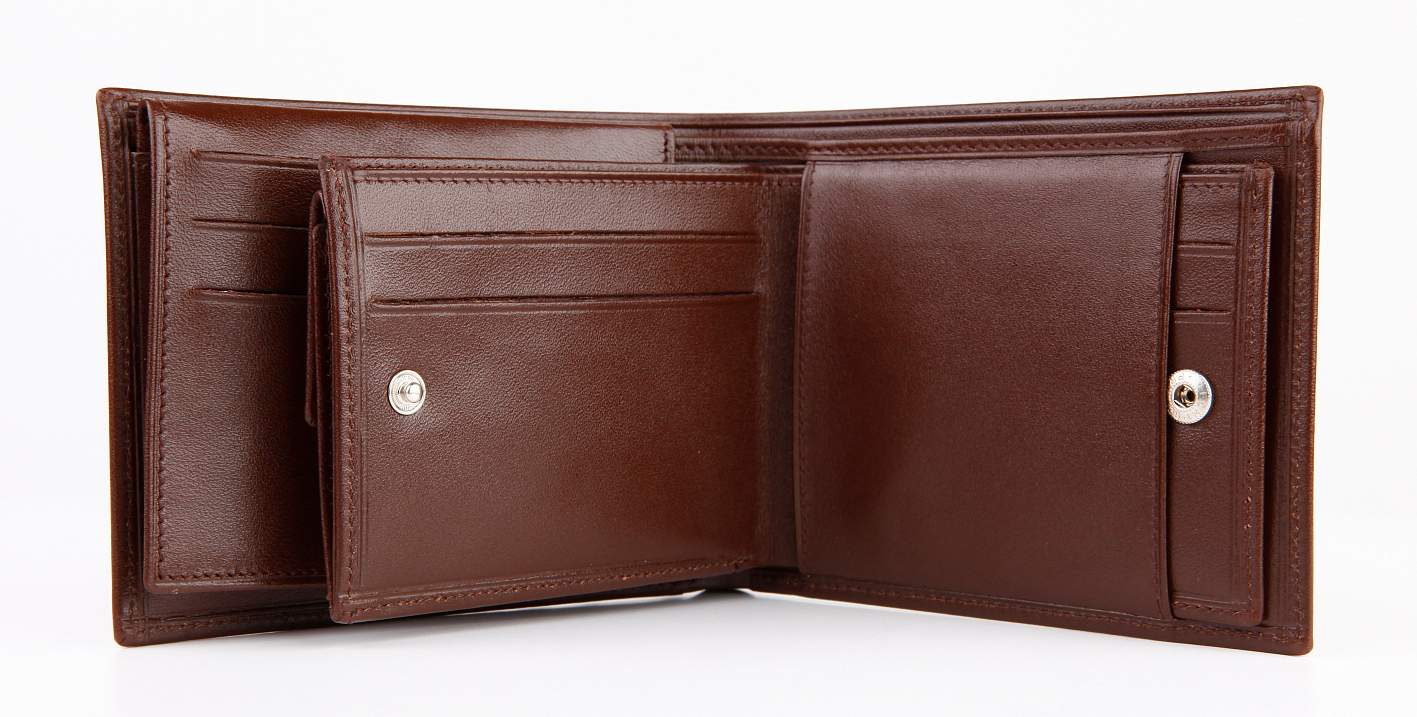 Портмоне из натуральной кожи. Внутри: 2 отделения для купюр, 5 отделений для кредитных карт. Внутри съемное портмоне, кот. можно носить отдельно (в нем отделение для купюр, отделение для монет, 4 отделения для кредитных и визитных карт).
