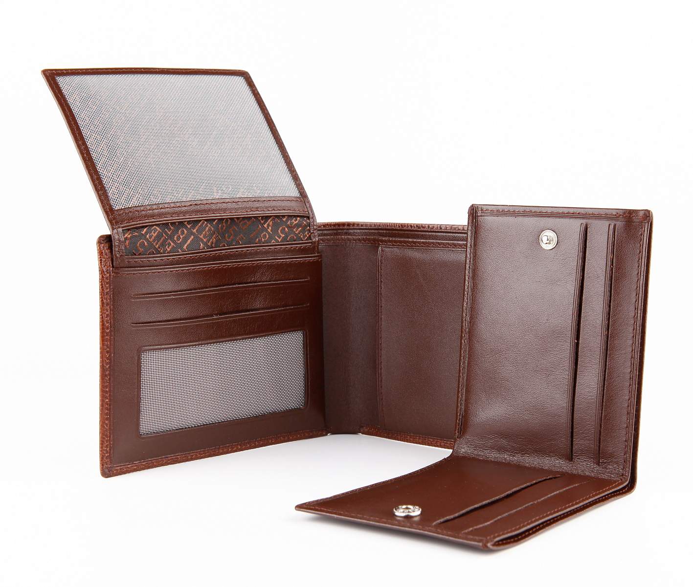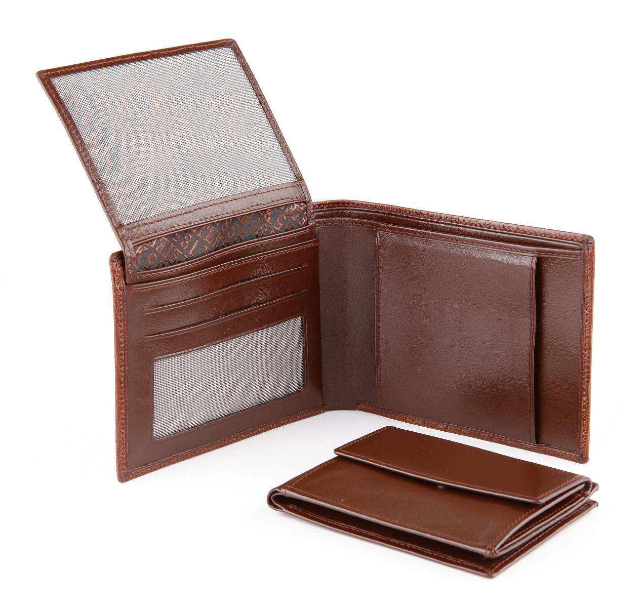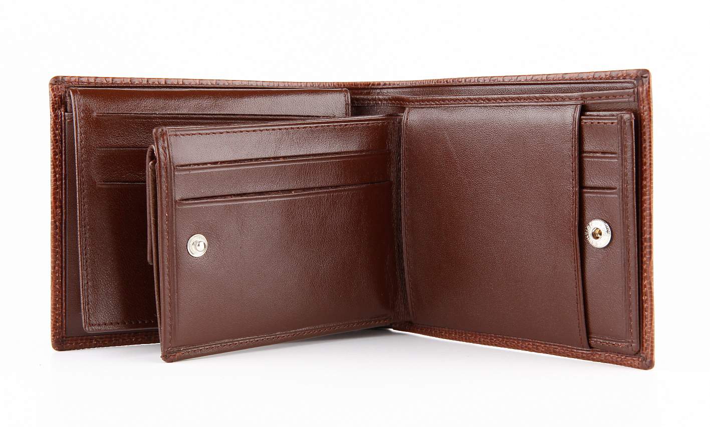Портмоне из натуральной кожи. Внутри: 2 отделения для купюр, 5 отделений для кредитных карт. Внутри съемное портмоне, кот. можно носить отдельно (в нем отделение для купюр, отделение для монет, 4 отделения для кредитных и визитных карт).