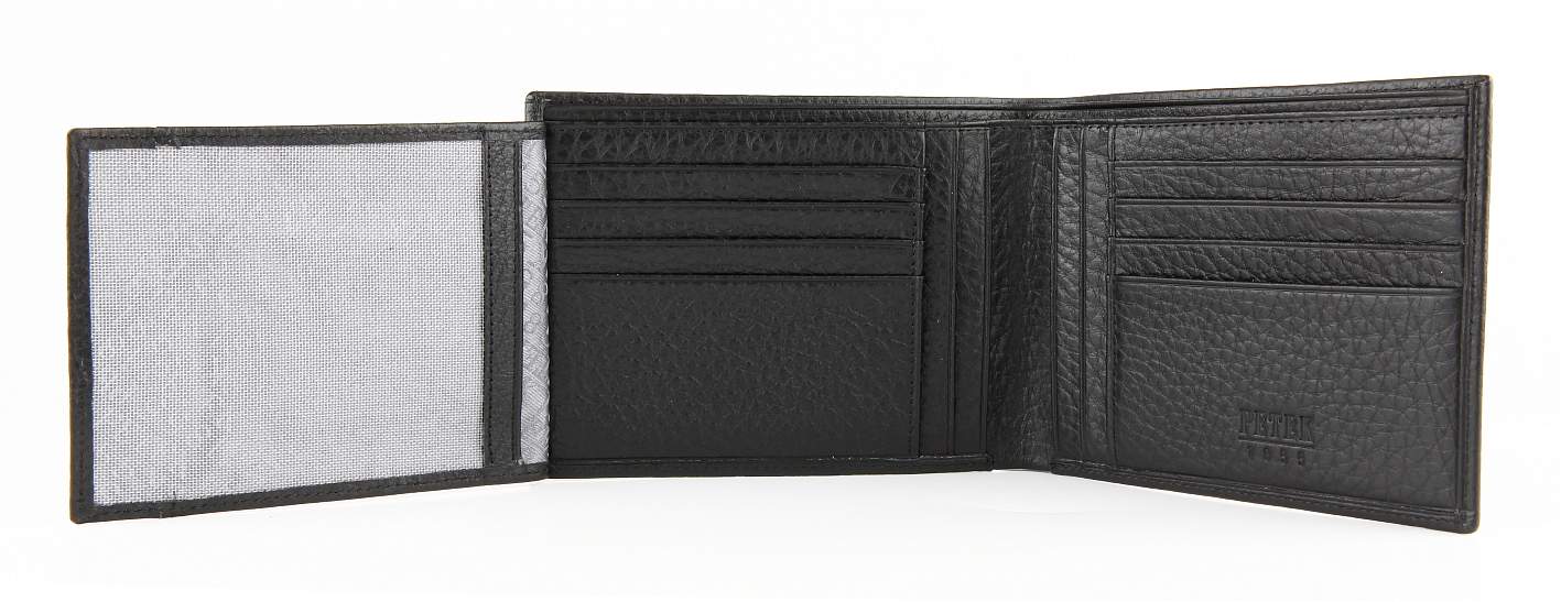 Элегантное портмоне из натуральной кожи. Два отделения для купюр, двенадцать отделений для кредитных карт, один карман-сетка, семь дополнительных отделений.