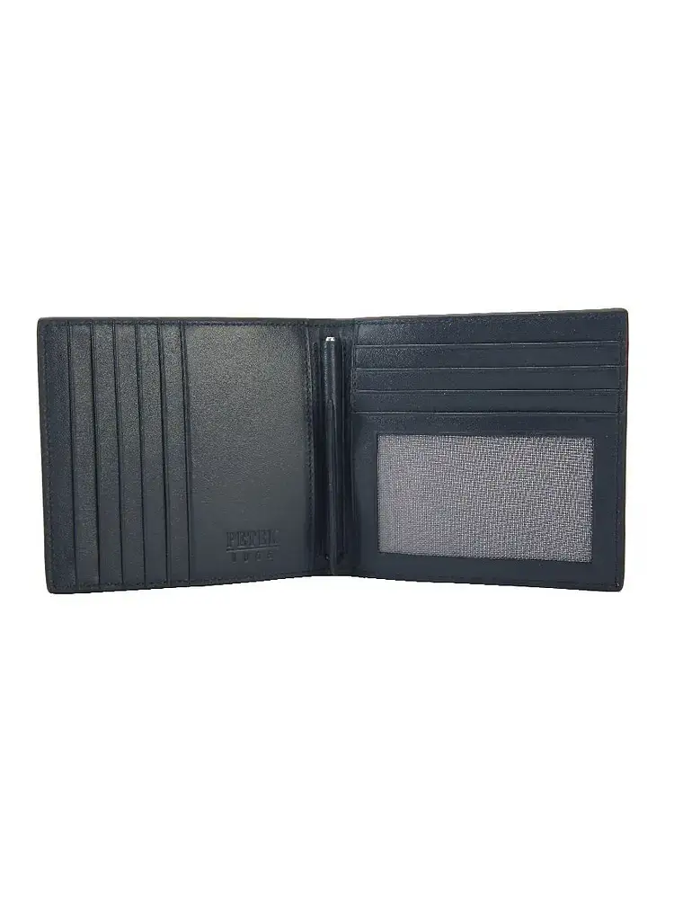 Портмоне Petek оснащено металлическим зажимом, обтянутым кожей, для хранения купюр.