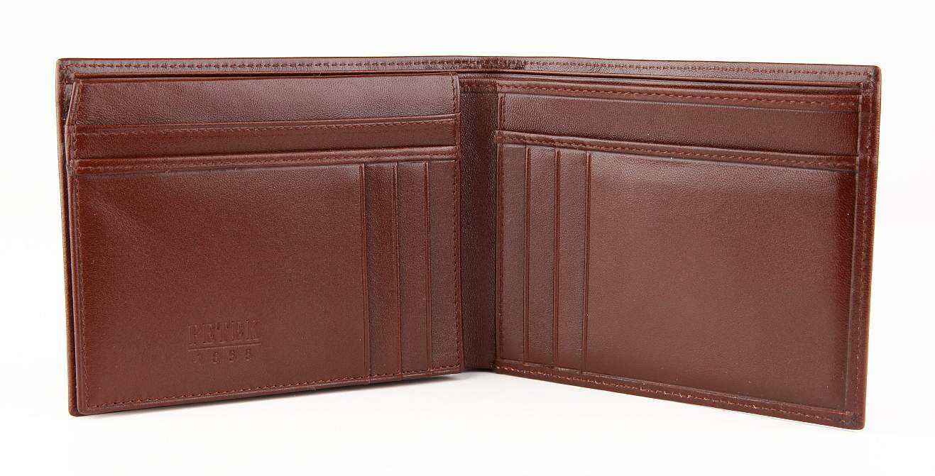 Портмоне для тех, кто не любит звон мелочи. Модель снабжена изрядным количеством кармашков для кредиток. В развёрнутом виде сразу доступны 9 кармашков для пластиковых карт, под откидным кожаным кард-блоком — есть ещё 4 слота и сеточное окошко. В этом портмоне есть два отделения для купюр.