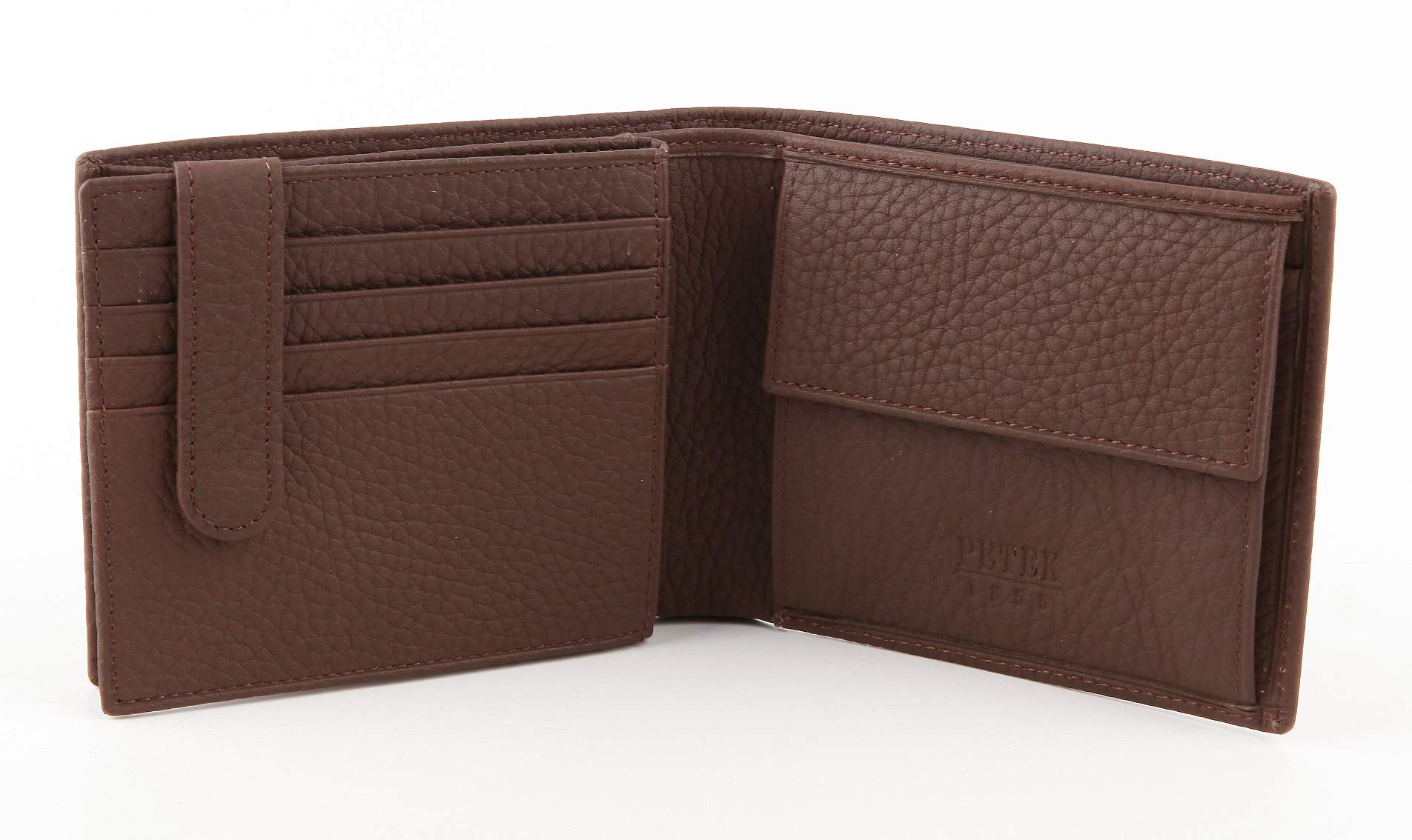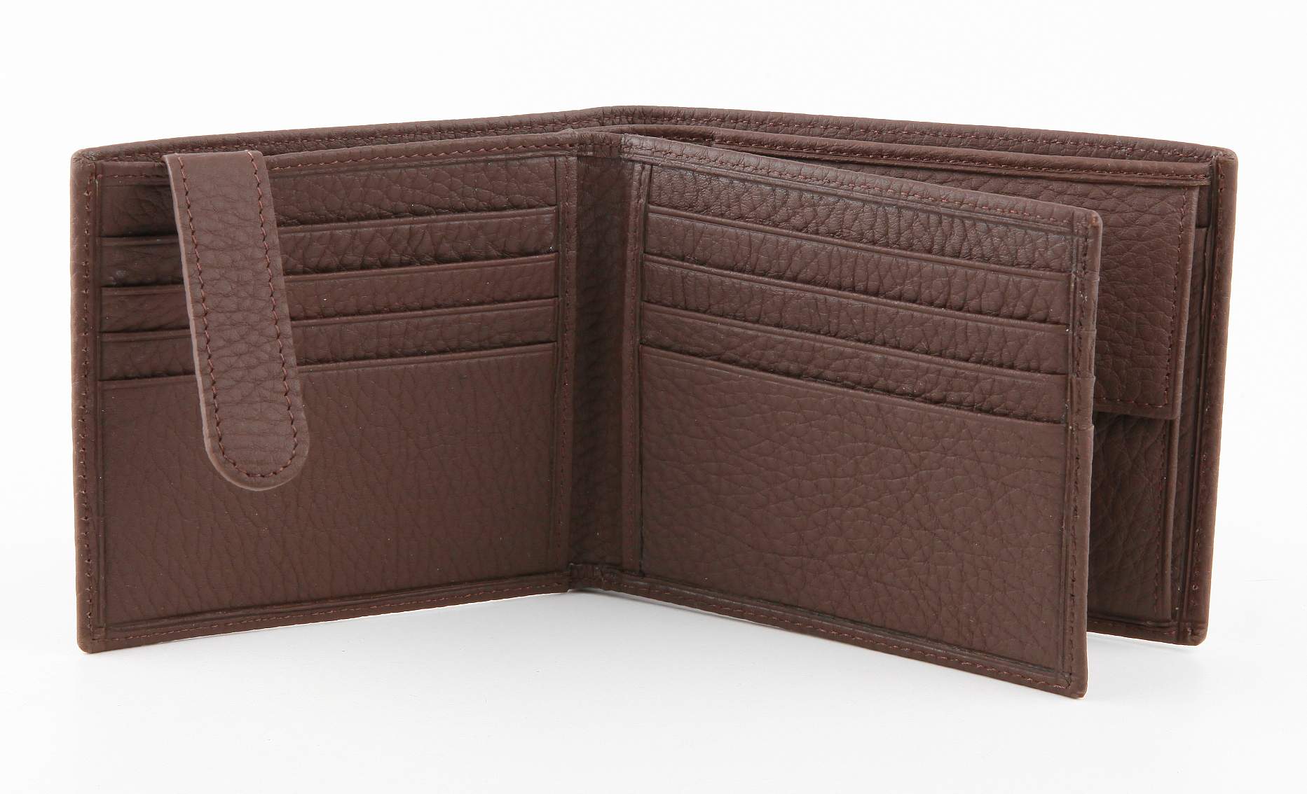 Портмоне из настоящей кожи - это многофункциональный мужской аксессуар, созданный для удобства и комфорта в повседневной жизни. Внутри этого портмоне вы найдете 2 отделения для денег, 12 карманов для пластиковых карт, 2 потайные секции и монетницу на кнопке.