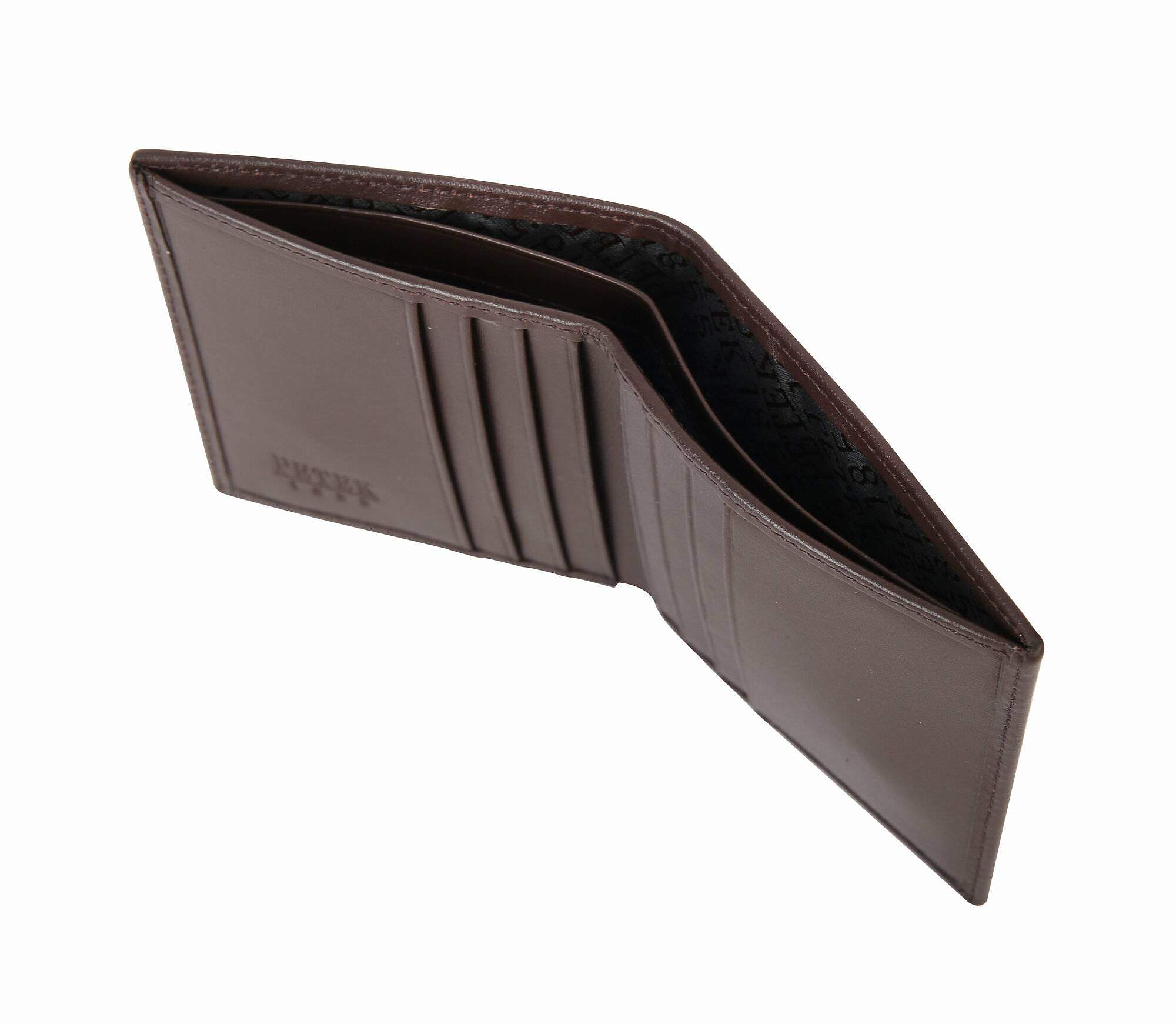 Современное облегченное мужское портмоне из натуральной кожи. Удобная и простая модель. Благодаря своим небольшим компактным размерам портмоне легко может разместиться в кармане пиджака или брюк. Внутри два кармана для купюр с крепкой фирменной подкладкой, шесть прорезных карманов для кредитных карточек.