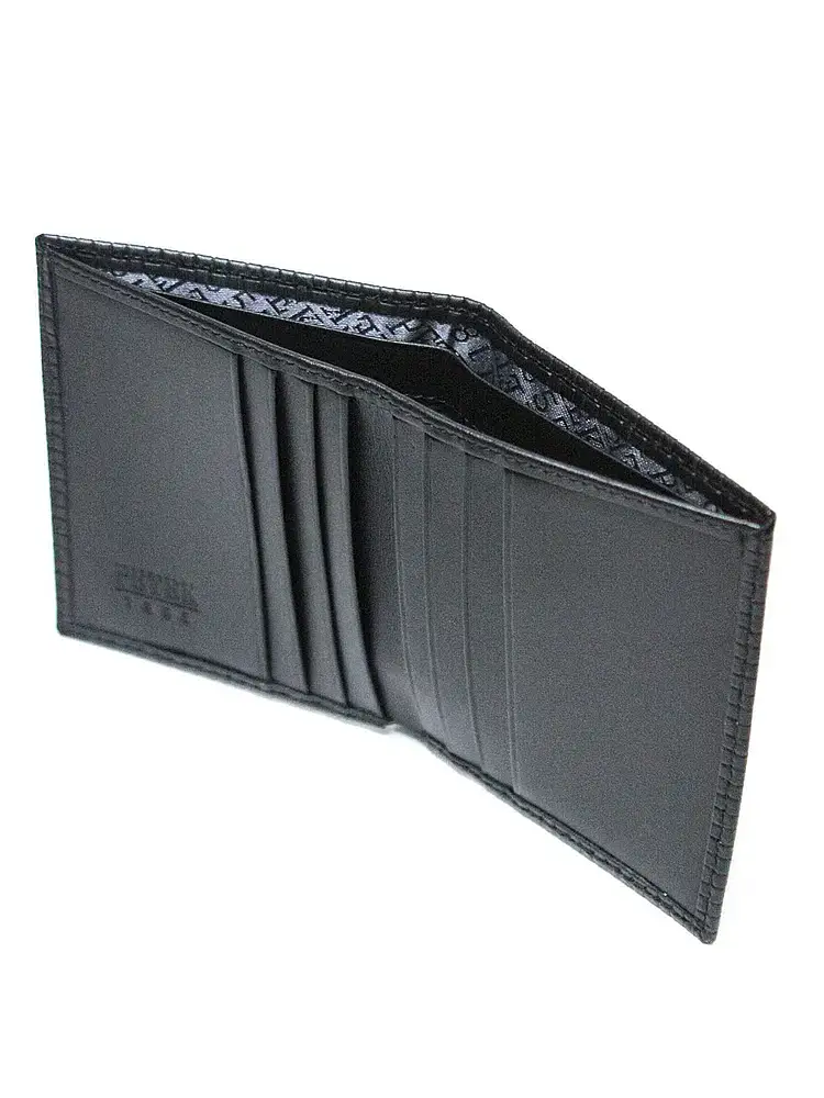 Современное облегченное мужское портмоне из натуральной кожи. Удобная и простая модель. Благодаря своим небольшим компактным размерам портмоне легко может разместиться в кармане пиджака или брюк. Внутри два кармана для купюр с крепкой фирменной подкладкой, шесть прорезных карманов для кредитных карточек.