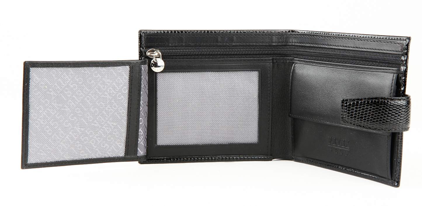 Мужское портмоне из натуральной кожи. Удобная классическая модель. Внутри: два отделения для купюр, один на молнии, монетница, один боковой карман, два прозрачных окошка, три отделения для визитных или пластиковых карт.