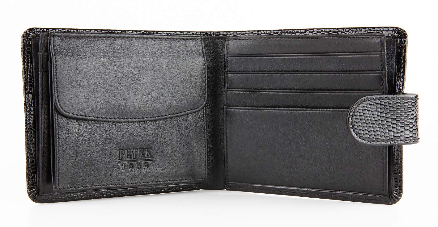 Женский элегантный кошелек Petek из натуральной кожи. Эта удобная и многофункциональная модель состоит из 1 отделения для купюр, 9 отделений для пластиковых карт, 5 карманов, 1 прозрачного отделения-сетки, с обратной стороны большая монетница на кнопке.