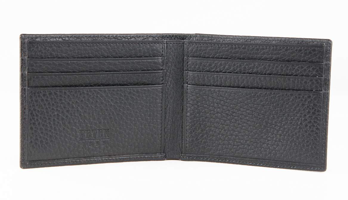 Облегченное мужское портмоне Petek из натуральной кожи. Компактная и стильная модель. Внутри: одно отделение для купюр, шесть отделений для кредитных карт, три дополнительных кармана.