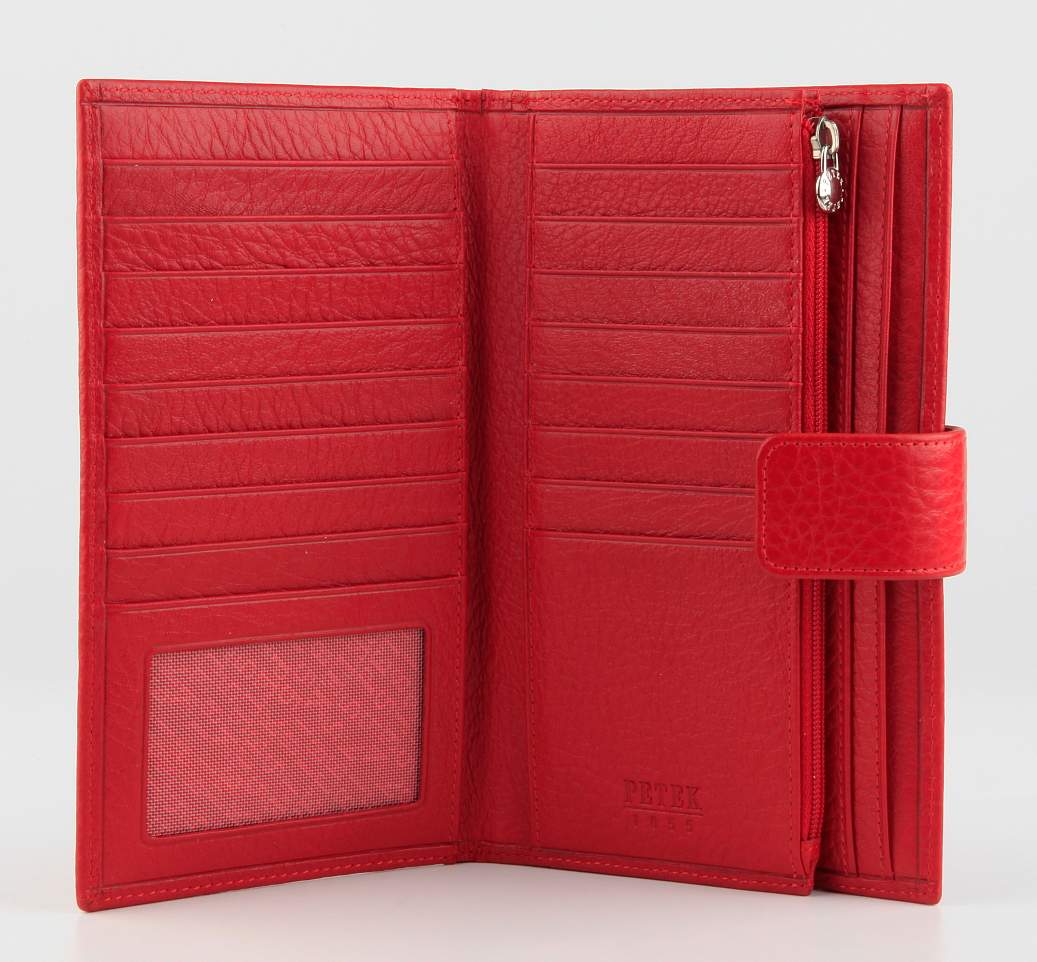 Современное удобное мужское портмоне Petek из натуральной кожи черного цвета с гладкой фактурой. Внутри имеются четыре кармана для купюр, отделение на молнии, 17 карманов для кредитных карт.