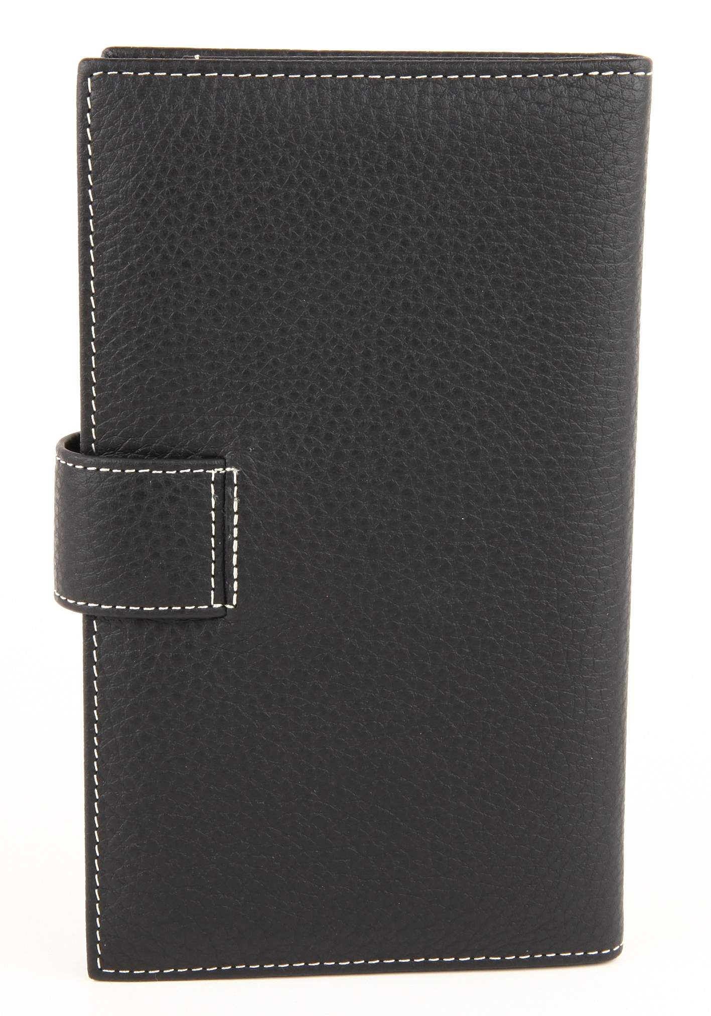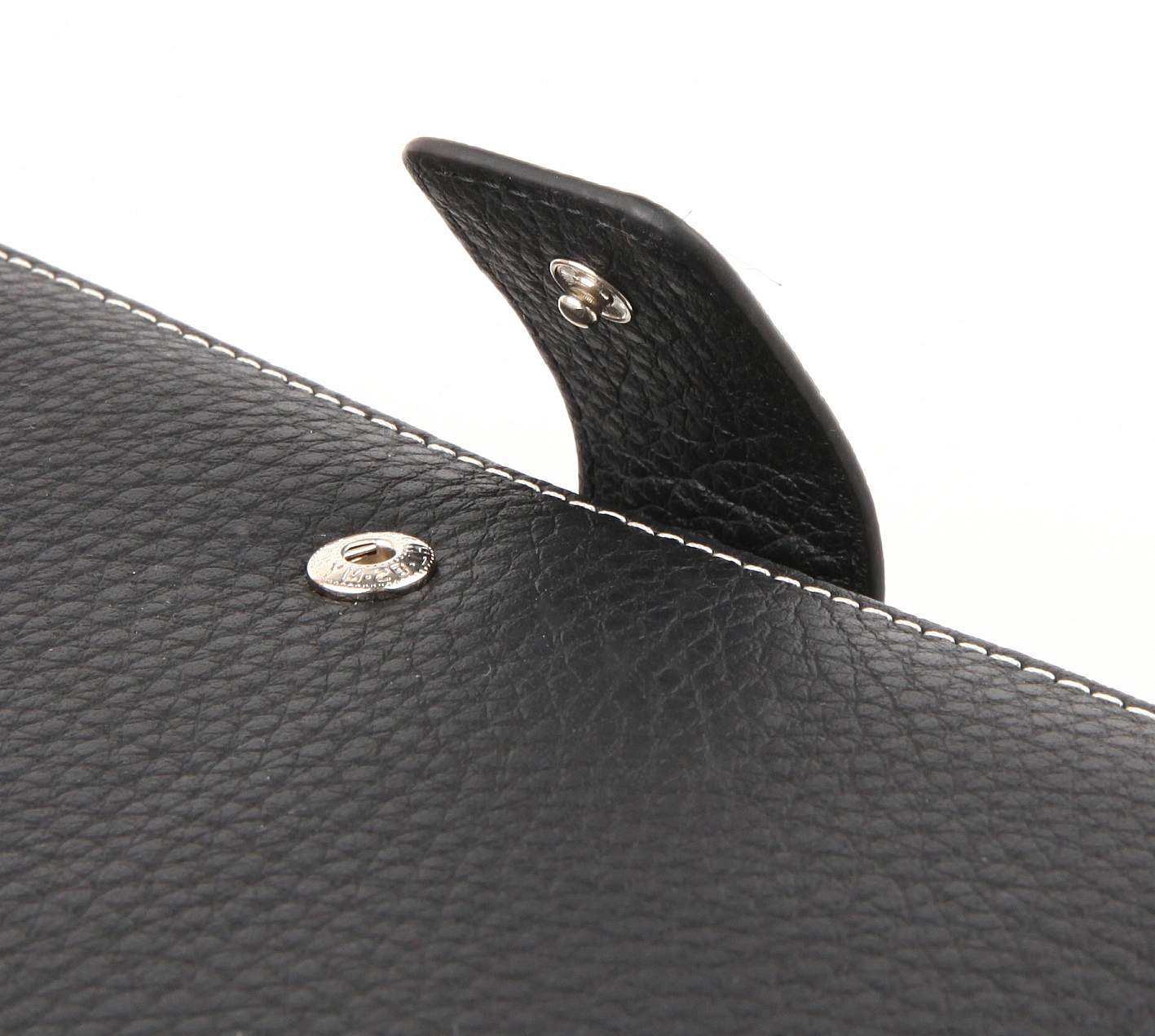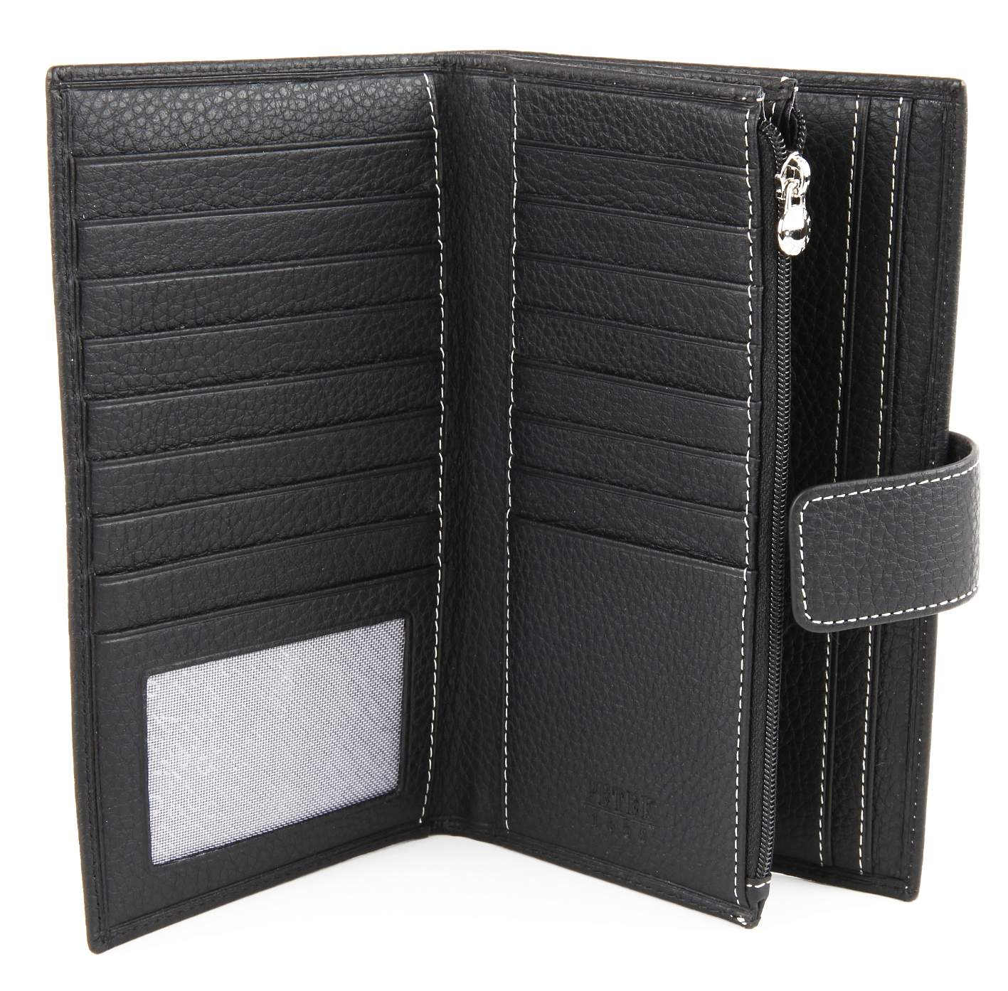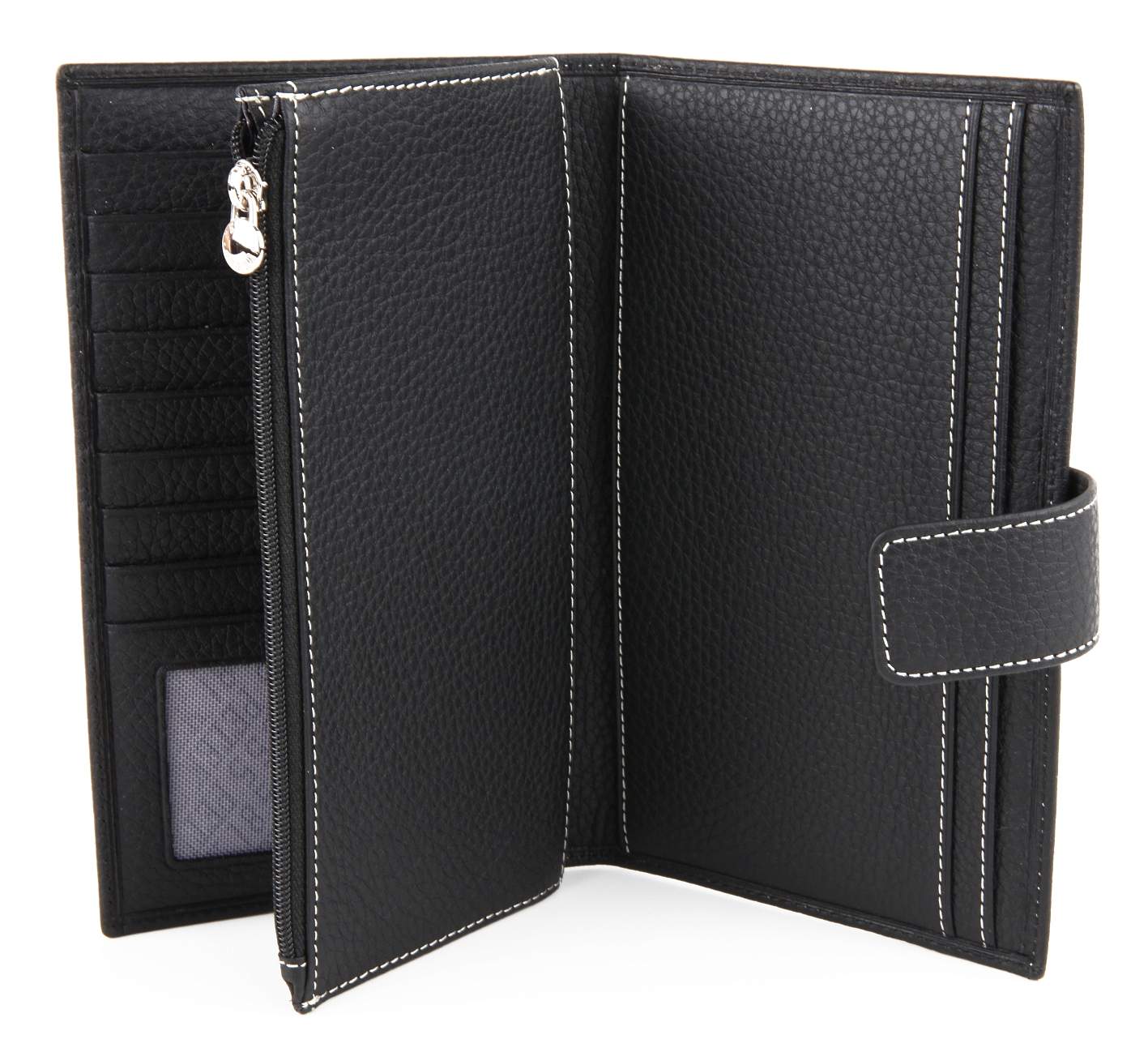 Современное удобное мужское портмоне Petek из натуральной кожи черного цвета. Внутри имеются четыре кармана для купюр, отделение на молнии, 17 карманов для кредитных карт.