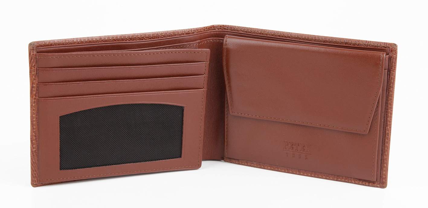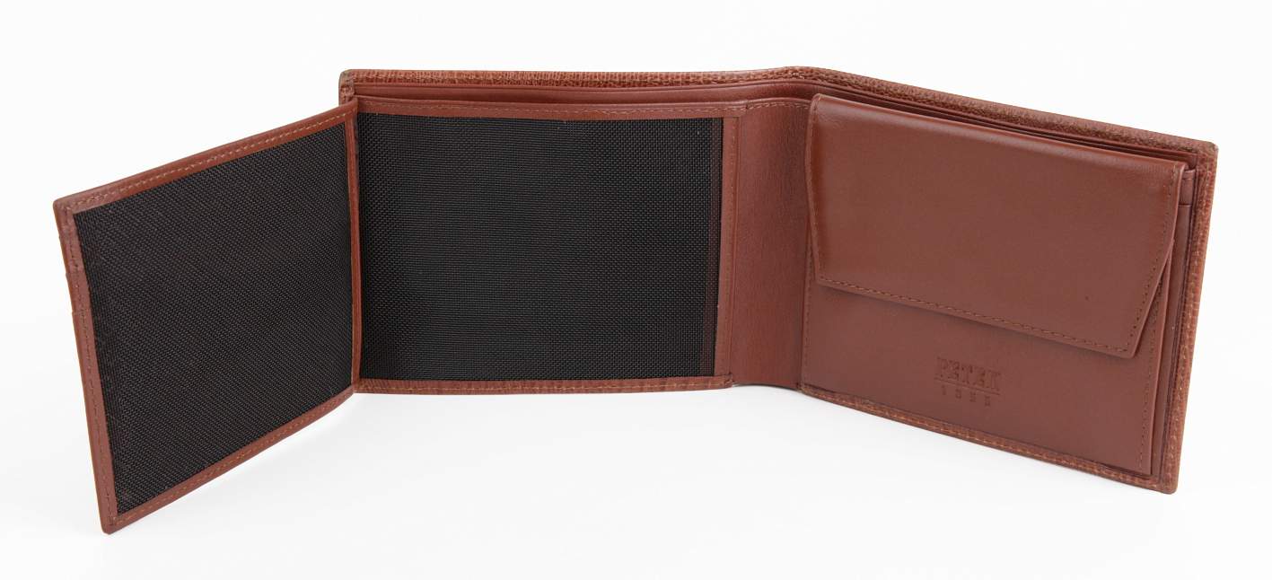 Мужское портмоне Petek из натуральной кожи . Классическая модель. Эта удобная и многофункциональная модель. Два отделения для купюр, три кармана для кредиток, два окошка-сеточки, отделение для мелочи.