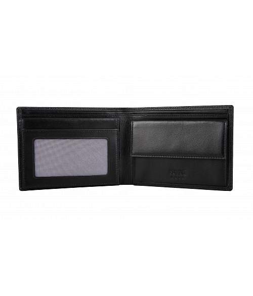 Стильное портмоне из натуральной кожи. Раскладывается пополам горизонтально, внутри: два отдела для купюр, отделение для мелочи, потайной карман для документов, два кармана для документов в сеточку, один кармашек для документа или пластиковой карты в сеточку.