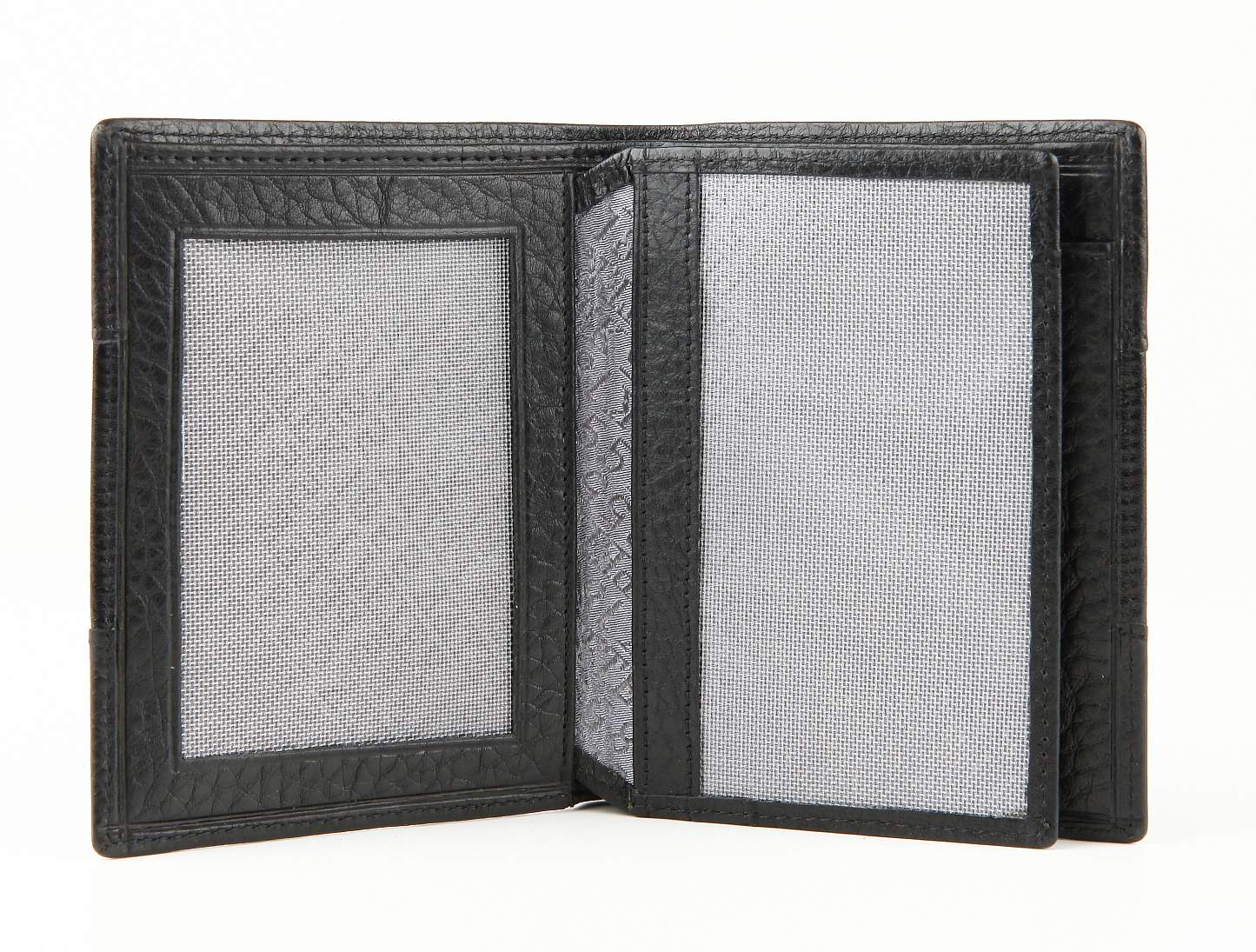 Закрывается без застежки, 2 отделения для купюр, 5 отделений для визитных и кредитных карт, 2 отделения для документов из сетки, 3 многофункциональных отделения.