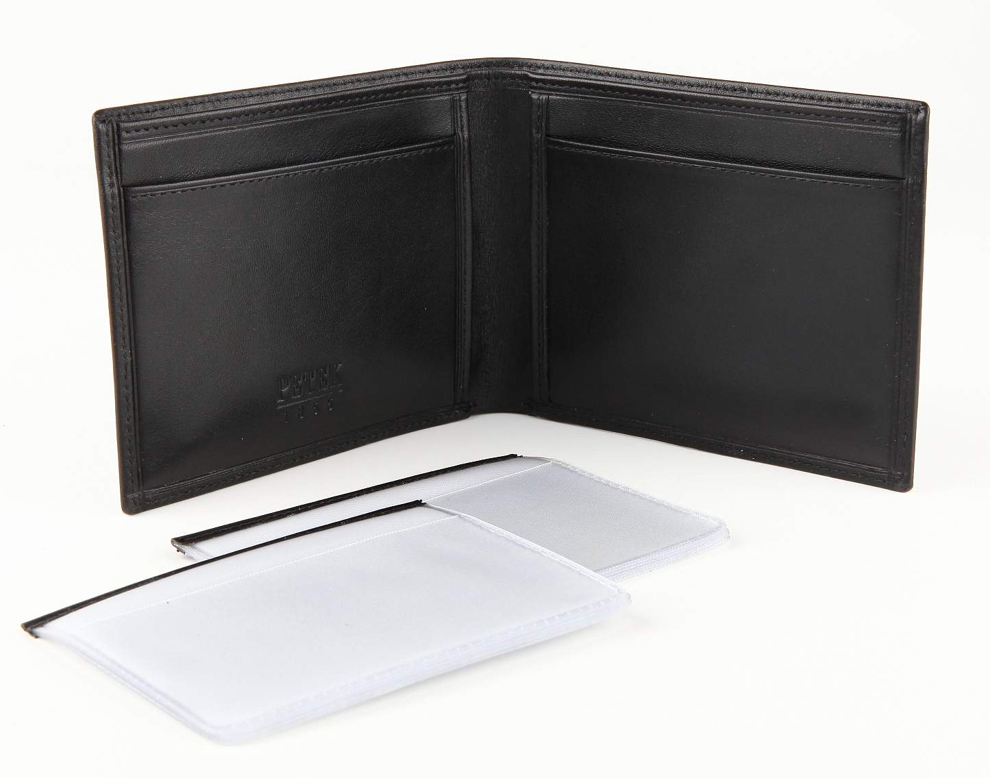 Закрывается без застежки, 2 отделения для купюр, 2 многофункциональных отделения, 2 съемные секции с 6 отделениями для визитных и кредитных карт в каждой.