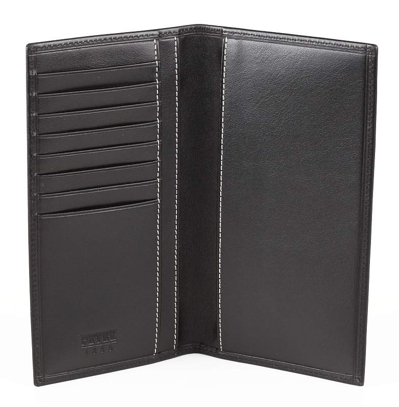 Данная модель большого размера и выглядит очень элегантно и со вкусом. Подойдет как обычное, так и как дорожное портмоне, подходит в качестве универсального чехла для смартфона. В нем находятся три  длинных отделения для купюр различной валюты и восемь карманов для кредитных и дисконтных карт.