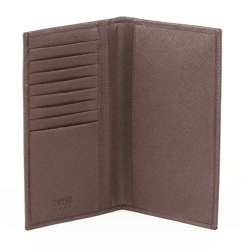 Данная модель большого размера и выглядит очень элегантно и со вкусом. Подойдет как обычное, так и как дорожное портмоне, подходит в качестве универсального чехла для смартфона. В нем находятся три  длинных отделения для купюр различной валюты и восемь карманов для кредитных и дисконтных карт.