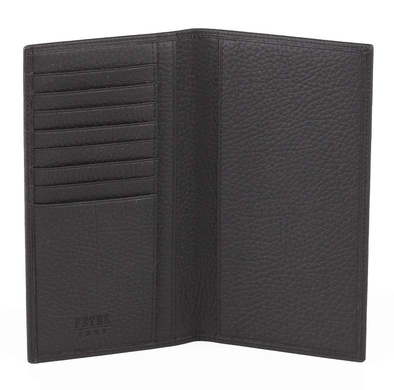 Данная модель большого размера и выглядит очень элегантно и со вкусом. Подойдет как обычное, так и как дорожное портмоне, подходит в качестве универсального чехла для смартфона. В нем находятся три  длинных отделения для купюр различной валюты и восемь карманов для кредитных и дисконтных карт.