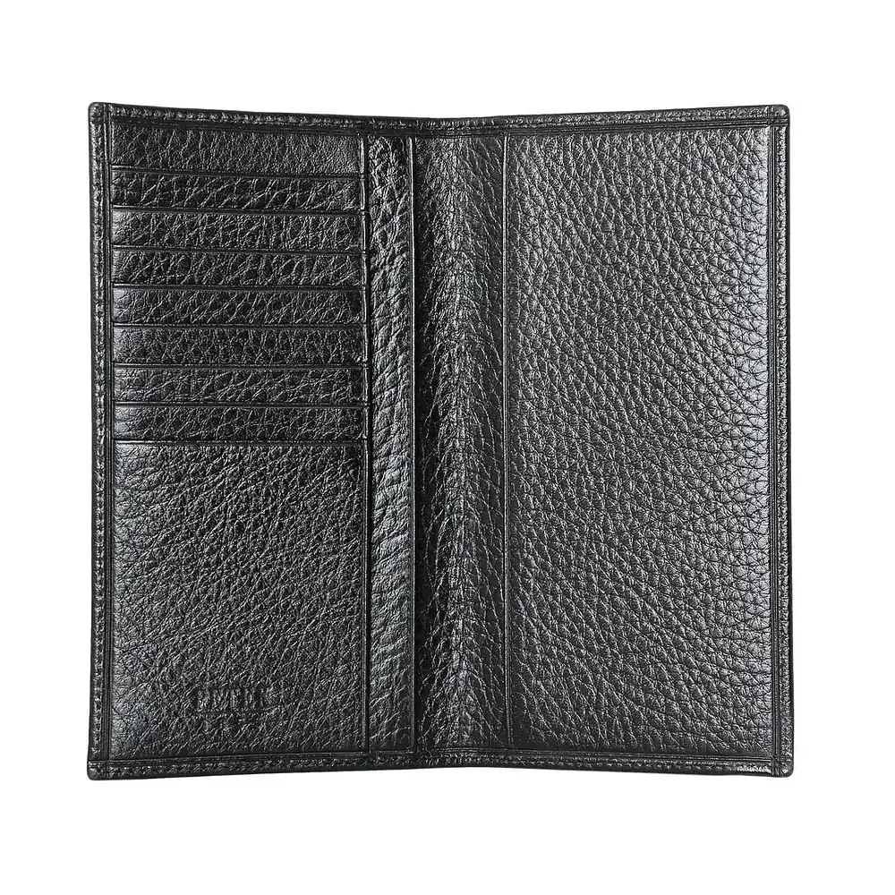 Данная модель большого размера и выглядит очень элегантно и со вкусом. Подойдет как обычное, так и как дорожное портмоне, подходит в качестве универсального чехла для смартфона. В нем находятся три  длинных отделения для купюр различной валюты и восемь карманов для кредитных и дисконтных карт.
