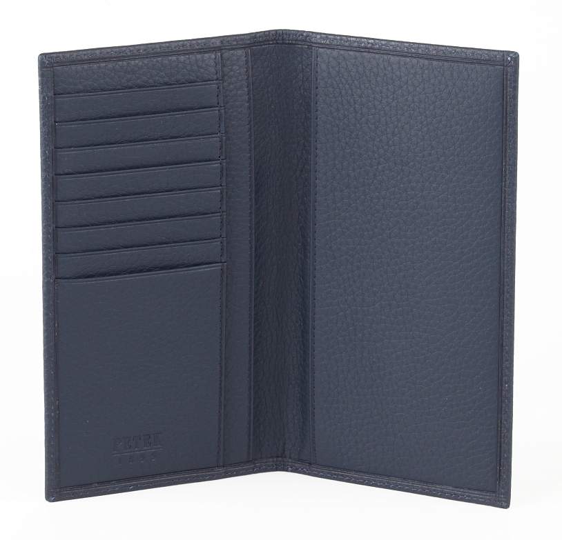 Данная модель большого размера и выглядит очень элегантно и со вкусом. Подойдет как обычное, так и как дорожное портмоне, подходит в качестве универсального чехла для смартфона. В нем находятся три  длинных отделения для купюр различной валюты и восемь карманов для кредитных и дисконтных карт.