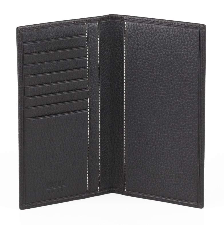 Данная модель большого размера и выглядит очень элегантно и со вкусом. Подойдет как обычное, так и как дорожное портмоне, подходит в качестве универсального чехла для смартфона. В нем находятся три  длинных отделения для купюр различной валюты и восемь карманов для кредитных и дисконтных карт.
