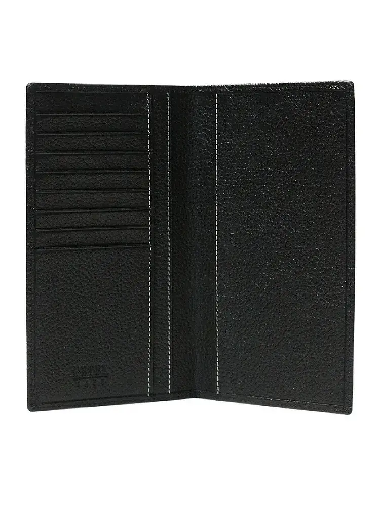 Данная модель большого размера и выглядит очень элегантно и со вкусом. Подойдет как обычное, так и как дорожное портмоне, подходит в качестве универсального чехла для смартфона. В нем находятся три  длинных отделения для купюр различной валюты и восемь карманов для кредитных и дисконтных карт.
