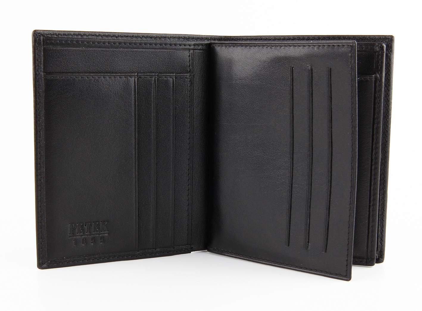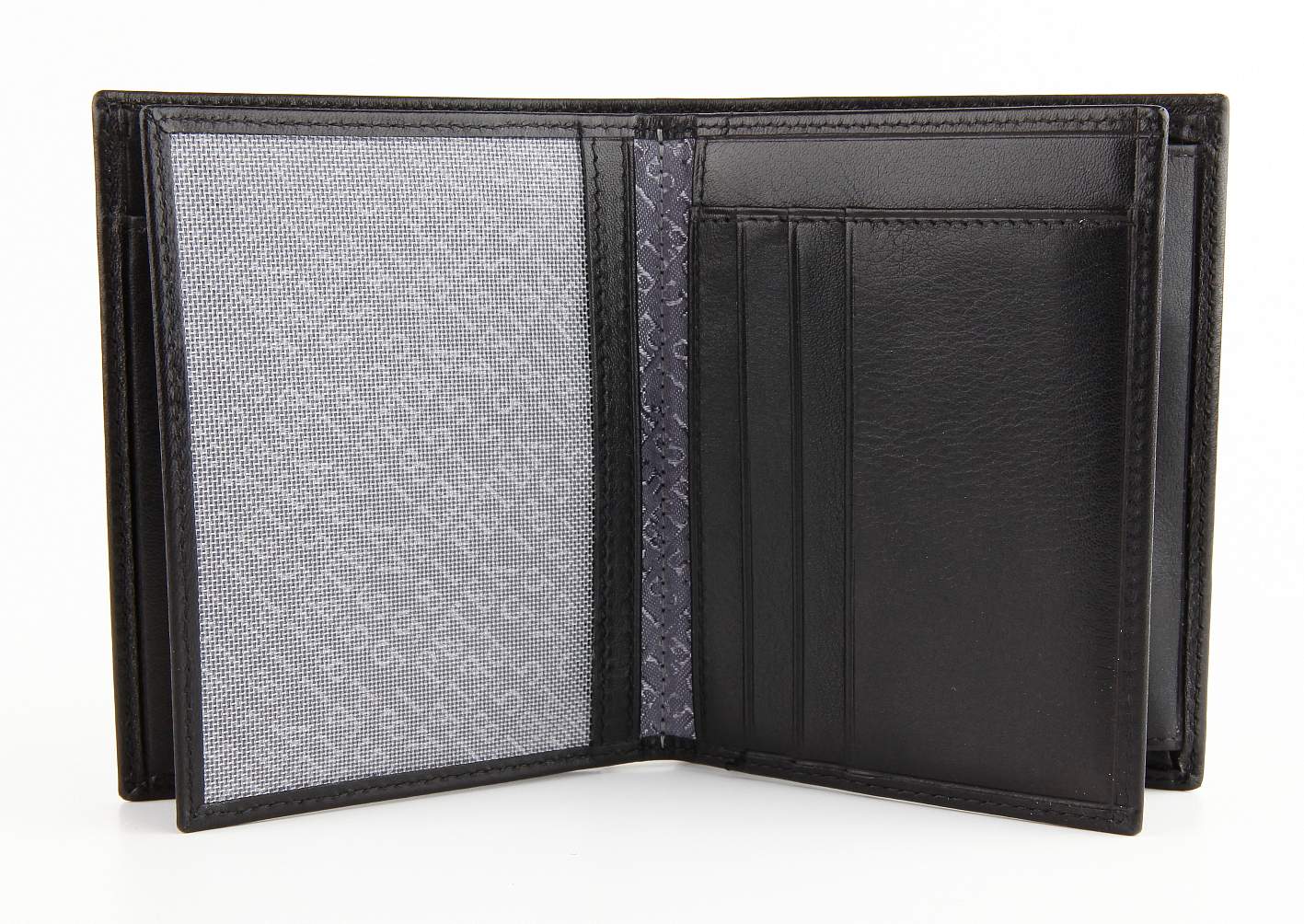 Портмоне имеет 2 отделения для купюр и 7 отсеков для кредитных карт, визиток и других документов. Боковые кармашки позволяют хранить документы и другие мелкие предметы. Монетница на кнопке обеспечивает удобное хранение монет.
