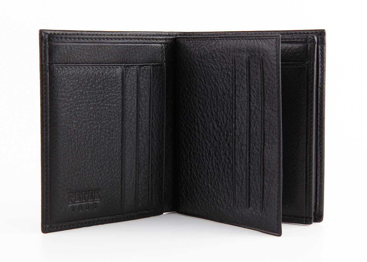 Стильное многофункциональное мужское портмоне Petek из натуральной кожи. Внутри предусмотрено одно отделение для купюр, одиннадцать карманов для кредиток, окошко-сеточка (10.5х8 см) и удобное отделение для мелочи.