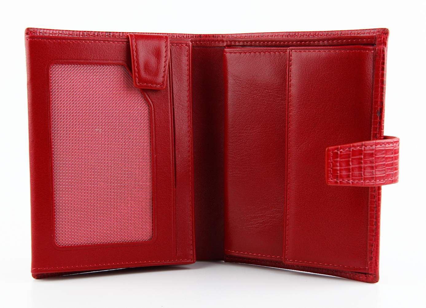 Портмоне-книжка из натуральной кожи. Многофункциональная модель. Закрывается на кнопку. Очень удобное и вместительное портмоне. В нем имеются: отделение для банкнот, отделение для монет на кнопке, девять кармашков для кредитных карточек, специальные отделения из прозрачной черной сетки, а также дополнительные блоки, которые пристегиваются хлястиком на кнопку. Модель представлена в различных цветовых решениях.