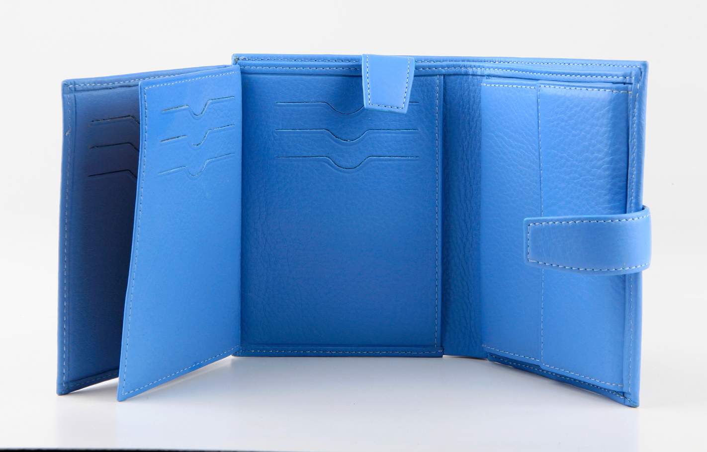 Мужское портмоне-книжка из натуральной кожи. Многофункциональная модель. Закрывается на кнопку. Очень удобное и вместительное портмоне. В нем имеются: отделение для банкнот, отделение для монет на кнопке, девять кармашков для кредитных карточек, специальные отделения из прозрачной черной сетки, а также дополнительные блоки, которые пристегиваются хлястиком на кнопку. Модель представлена в различных цветовых решениях.