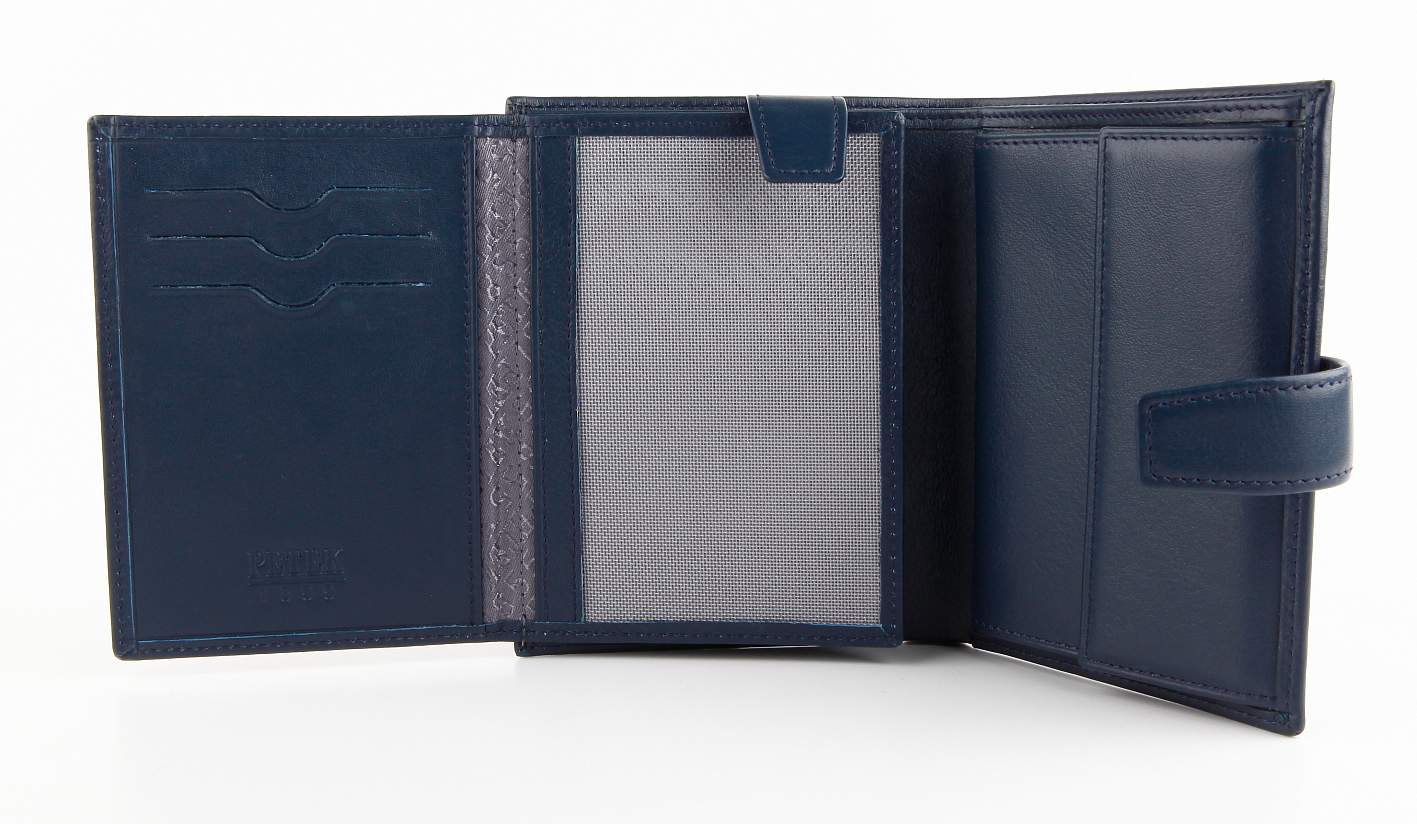 Мужское портмоне-книжка из натуральной кожи. Многофункциональная модель. Закрывается на кнопку. Очень удобное и вместительное портмоне. В нем имеются: отделение для банкнот, отделение для монет на кнопке, девять кармашков для кредитных карточек, специальные отделения из прозрачной черной сетки, а также дополнительные блоки, которые пристегиваются хлястиком на кнопку. Модель представлена в различных цветовых решениях.