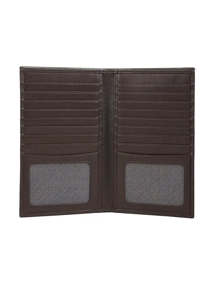Портмоне из натуральной кожи. Модель для тех, кто пользуется кредитными карточками чаще, чем купюрами. Внутри двадцать отделений для кредиток, десять слева и десять справа.Под ними прозрачные карманы(слева с пластиковым окошком, справа с сеткой). Сверху большой карман для наличности с фактурной и крепкой подкладкой. В комплекте брошюра о компании и гарантия производителя. Характеристики товара:Отделения для купюр — 1; закрывается — без застёжки; Отделения для карточек — 20; Внутренние отделения — 2
