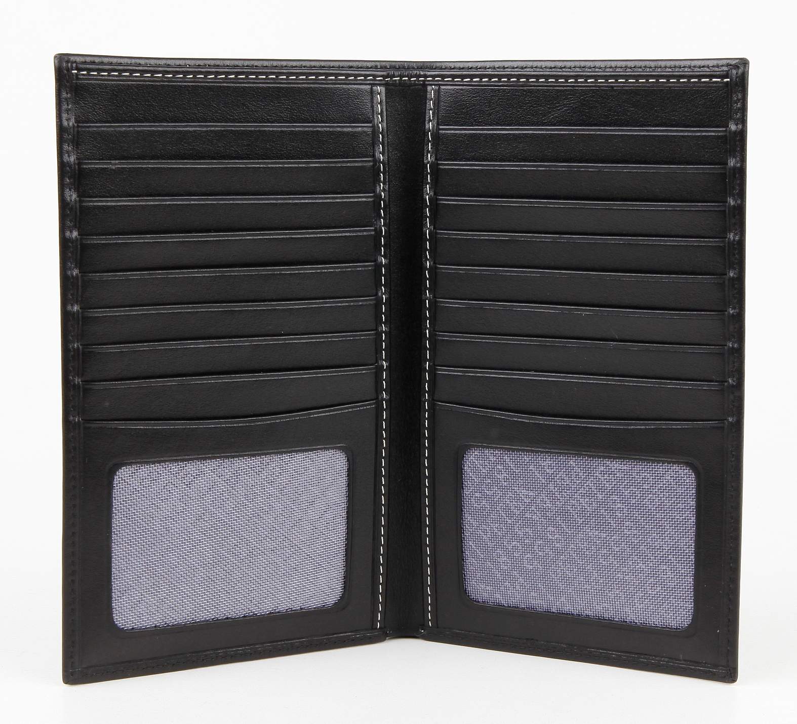 Портмоне из натуральной кожи. Модель для тех, кто пользуется кредитными карточками чаще, чем купюрами. Внутри двадцать отделений для кредиток, десять слева и десять справа.Под ними прозрачные карманы(слева с пластиковым окошком, справа с сеткой). Сверху большой карман для наличности с фактурной и крепкой подкладкой. В комплекте брошюра о компании и гарантия производителя. Характеристики товара:Отделения для купюр — 1; закрывается — без застёжки; Отделения для карточек — 20; Внутренние отделения — 2