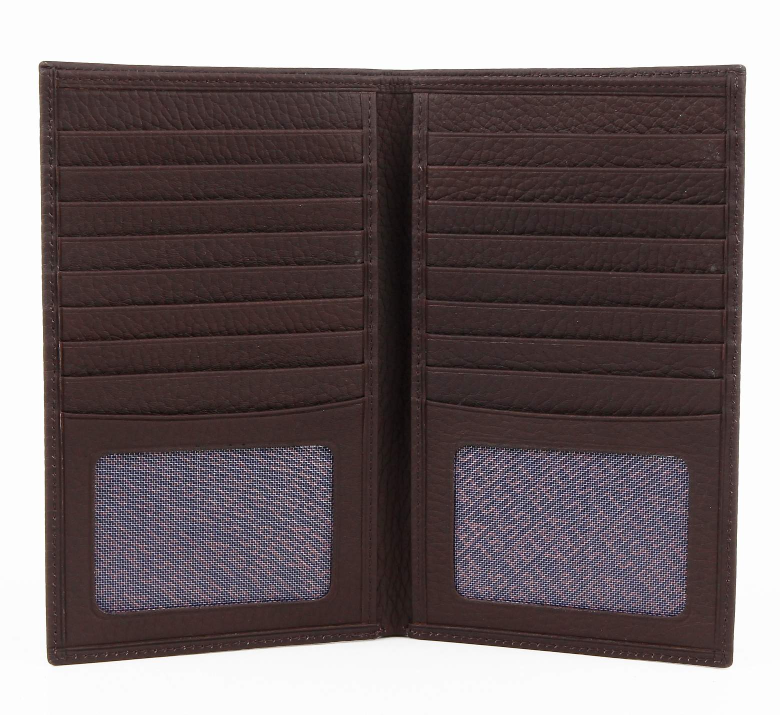 Портмоне из натуральной кожи коричневого цвета. Модель для тех, кто пользуется кредитными карточками чаще, чем купюрами. Внутри двадцать отделений для кредиток, десять слева и десять справа.Под ними прозрачные карманы(слева с пластиковым окошком, справа с сеткой). Сверху большой карман для наличности с фактурной и крепкой подкладкой. В комплекте брошюра о компании и гарантия производителя. Характеристики товара:Отделения для купюр — 1; закрывается — без застёжки; Отделения для карточек — 20; Внутренние отделения — 2