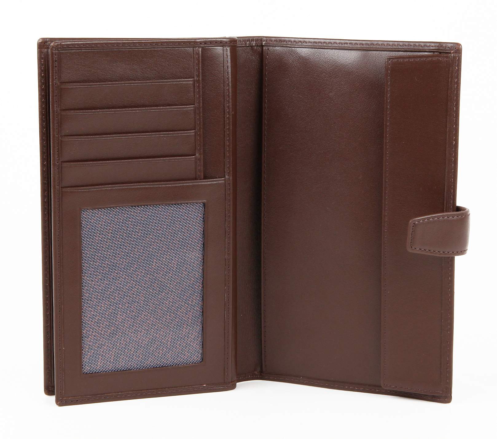 Портмоне из натуральной кожи.В кошельке 4 отделения для документов и купюр, 1 отделение-сетка для документов, 6 кармашек для кредитных карт, один из них - сетка. Монетница с клапаном без застежки. Зарывается на клапан с кнопкой.