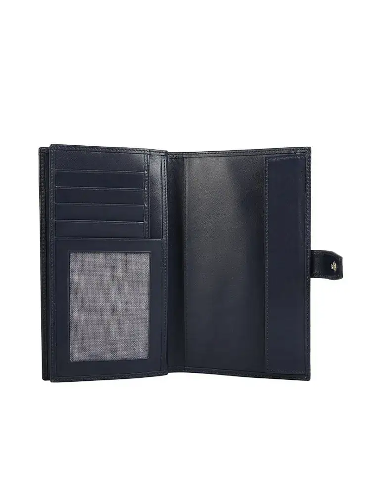 Портмоне выполнено из натуральной кожи высокого качества, что гарантирует долговечность и привлекательный внешний вид. Внутри кошелька есть 4 отделения для хранения документов и купюр, одно отделение-сетку для хранения документов, 6 кармашков для кредитных карт и один кармашек-сетка. Также имеется монетница, которая закрывается на кнопку. Кошелёк закрывается на клапан с помощью кнопки. Такое портмоне станет отличным подарком для мужчин, которые ценят удобство и качество.