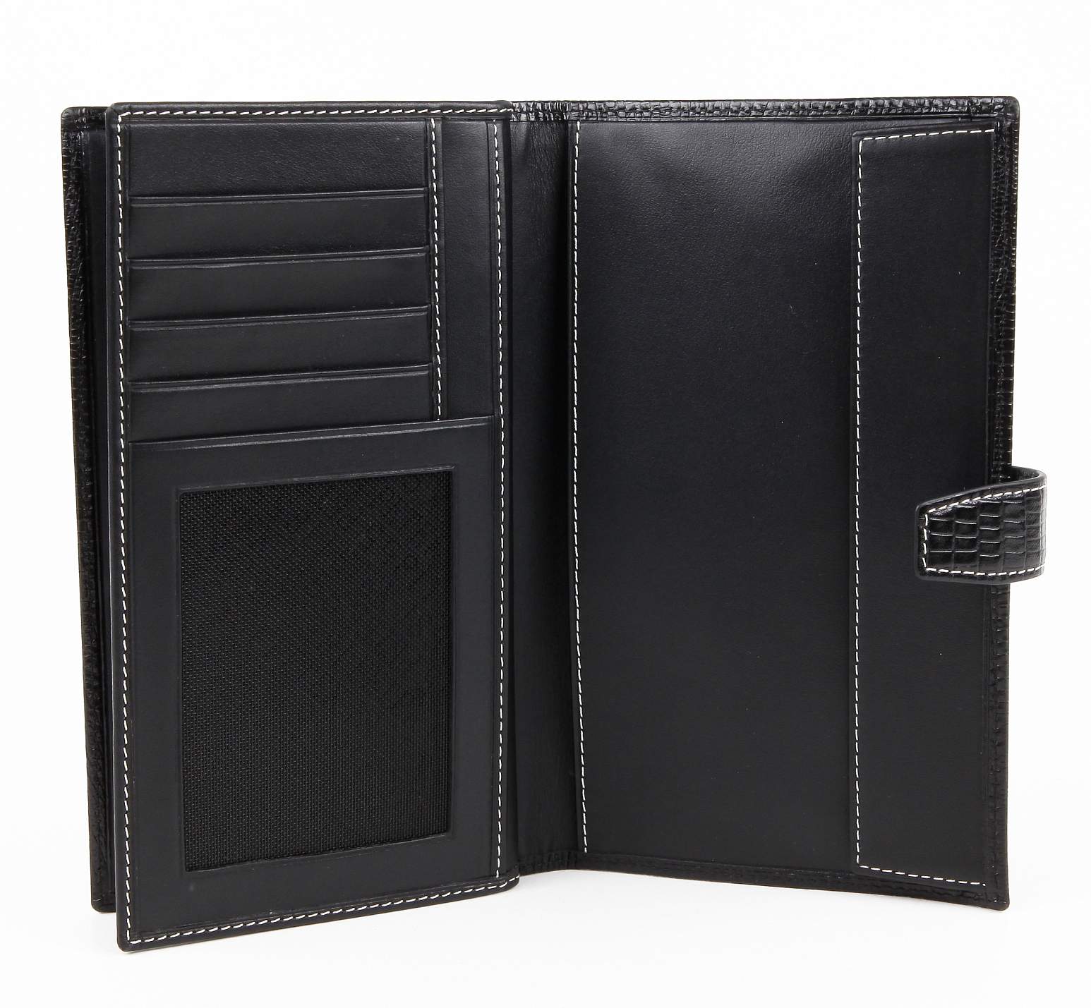 Портмоне выполнено из натуральной кожи высокого качества, что гарантирует долговечность и привлекательный внешний вид. Внутри кошелька есть 4 отделения для хранения документов и купюр, одно отделение-сетку для хранения документов, 6 кармашков для кредитных карт и один кармашек-сетка. Также имеется монетница, которая закрывается на кнопку. Кошелёк закрывается на клапан с помощью кнопки. Такое портмоне станет отличным подарком для мужчин, которые ценят удобство и качество.