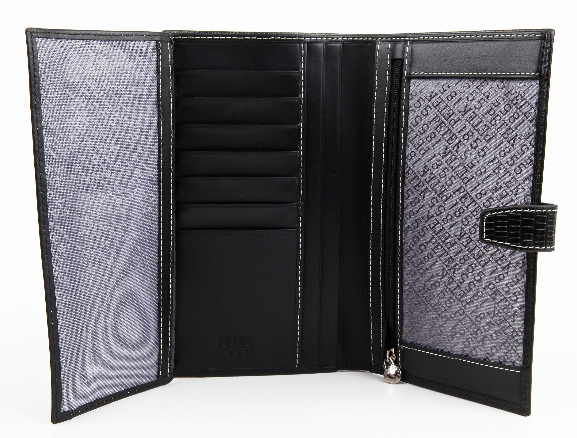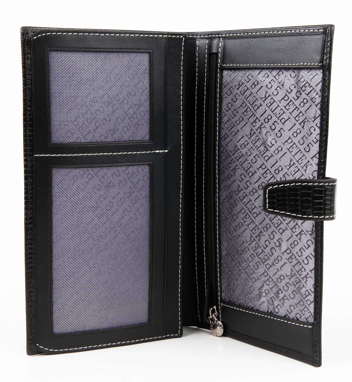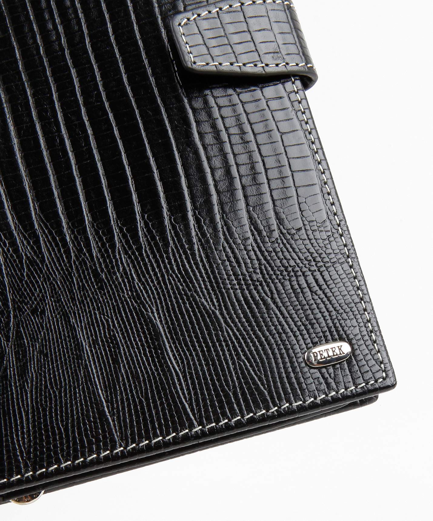 Мужское портмоне из натуральной кожи черного цвета. Элегантная модель. Одно отделение для купюр + четыре больших кармана, семь карманов для кредиток, карман на молнии.