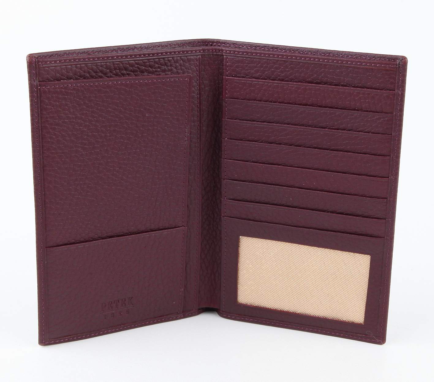 Бумажник путешественника из натуральной телячьей кожи. Внутри расположено место для паспорта, большой отдел для визитных и кредитных карт, одно отделение с прозрачным окошком, плюс один маленький карман и просторное отделение для наличных денег.